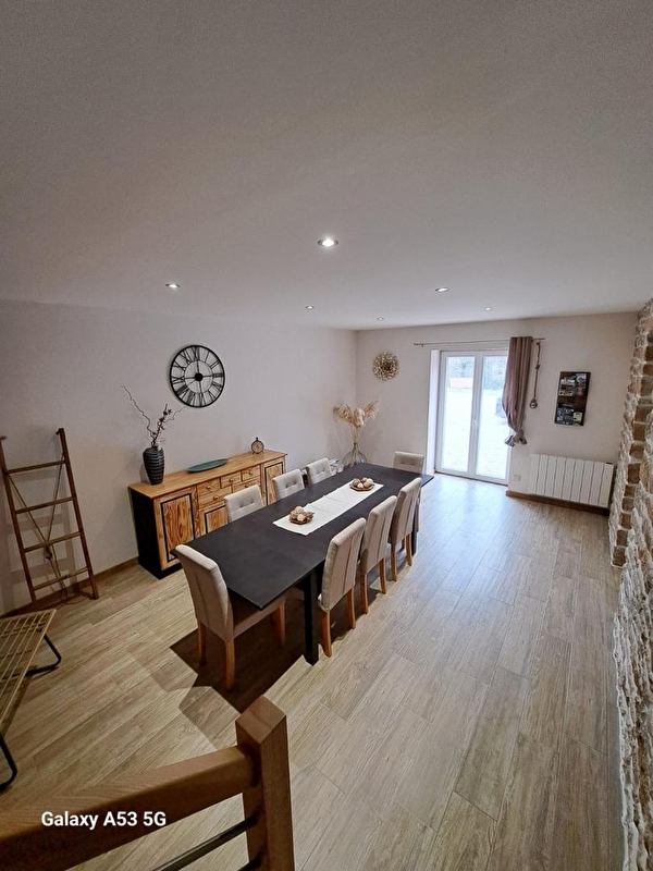 Vous recherchez des vacances au calme, alors cette maison isolée sera le le lieu idéal pour vos prochaines vacances! En pierre et entièrement rénovée par les propriétaires se compose au rez-de-chaussée d'une cuisine toute équipée avec fourneau à bois, d'une salle à manger, d'une buanderie avec lave-linge, d'une salle d'eau avec douche à l'italienne et d'un WC indépendant. A l'étage, salon avec TV, canapé convertible 180*200 et 2 lits gigogne (pouvant accueillir 2 personnes supplémentaires sur demande) et 2 chambres avec chacune 1 lit double (160*200). Pour votre plus grand confort, les lits seront faits à votre arrivée et les serviettes sont fournies. Côté extérieur, vous pourrez profiter d'un salon de jardin, de transats et d'un barbecue. Vaste terrain et bois attenant avec terrain de pétanque, cabane dans les arbres et étang empoissonné (la plus grande vigilance est recommandé avec les enfants car l'étang n'est pas sécurisé). Idéalement situé pour découvrir Poligny, capitale du Comté, Arbois, capitale des vins du Jura, Dole, ville d'art et d'histoire. Vous pourrez également pratiquer la randonnée avec les nombreux sentiers de randonnée situés à proximité du gîte. INFORMATION IMPORTANTE : eau non potable qui peut seulement être utilisée pour les équipements (lave-linge, lave-vaisselle, douche et WC)