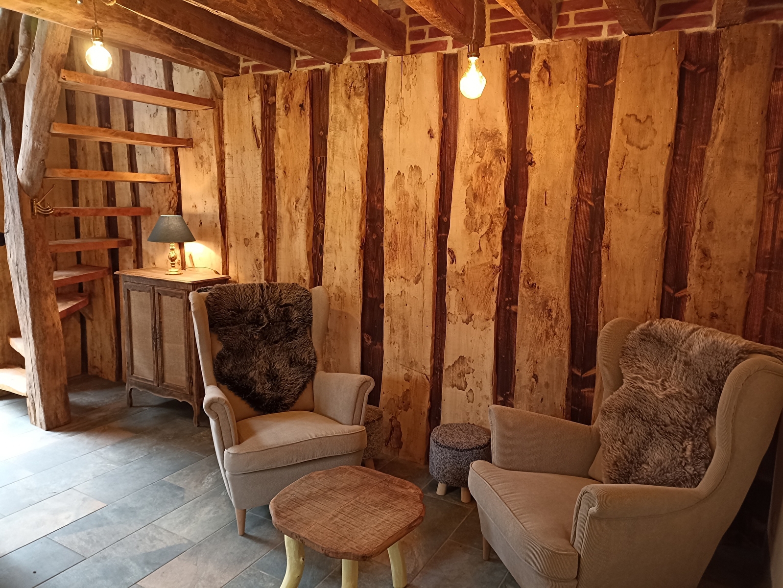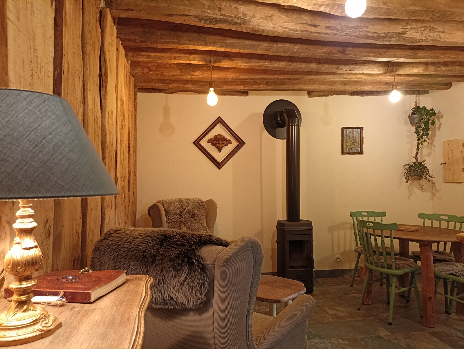 Détendez vous dans notre gîte la Cabiotte. Grâce à son design insolite, ce dernier vous fera changer d’air ! Conçue et équipée pour 4 personnes, joliment aménagée, chaleureuse et confortable, notre Cabiotte vous séduira par son charme féérique, son côté ultra cosy et authentique. En pierre et bois, elle est isolée et chauffée avec un joli petit poêle à bois. Son coin cuisine équipée vous permettra un séjour plus long. Pourvue de tout le confort avec sa salle de douche privée et ses WC.