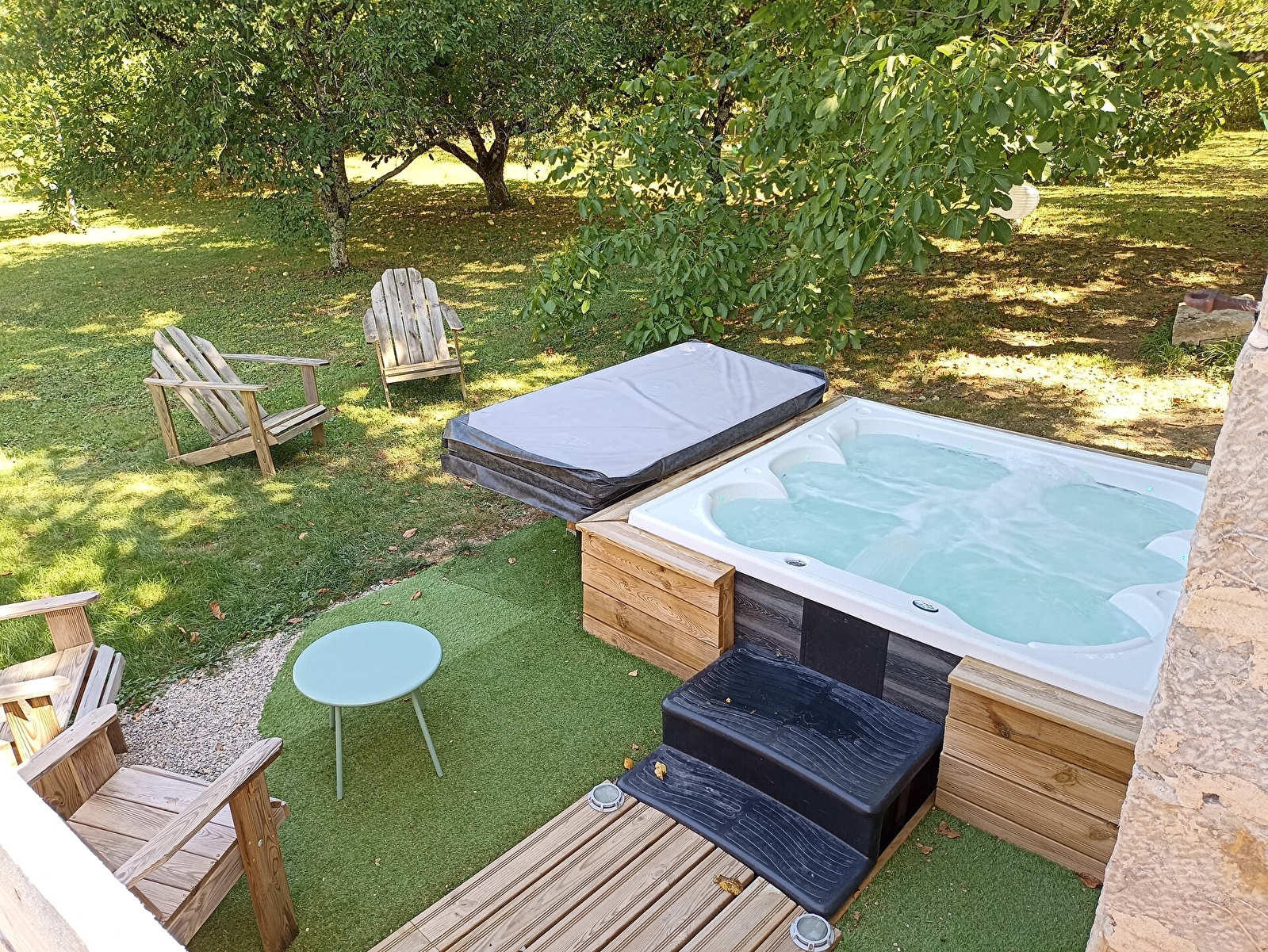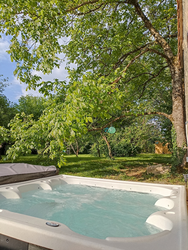 Le spa privatif vous attend pour des moments de détente avec vue sur le verger.