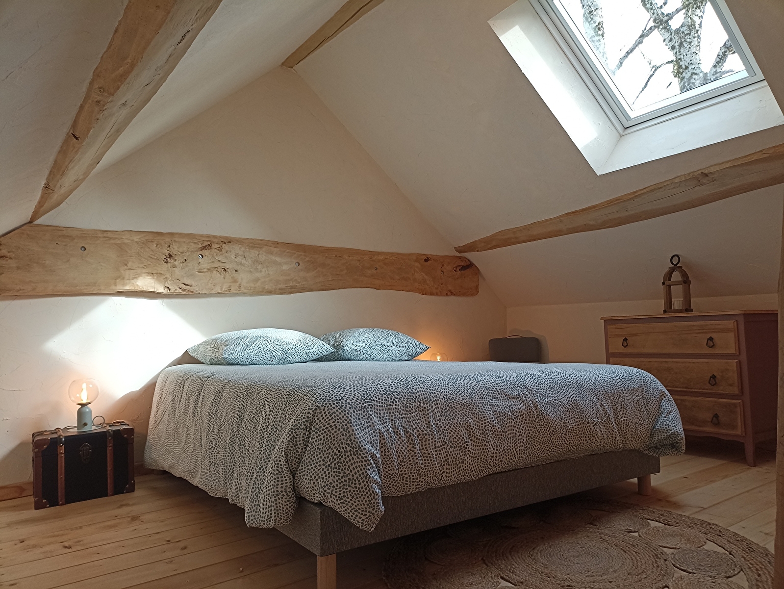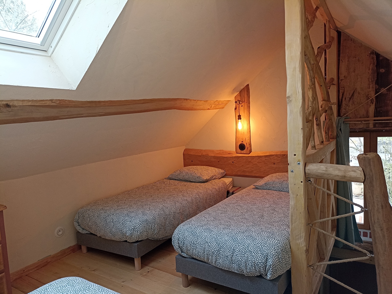 L’escalier biscornu vous emmènera au pays des rêves pour passer de douces nuits dans le lit Queen size ou un des 2 lits de 80×200.