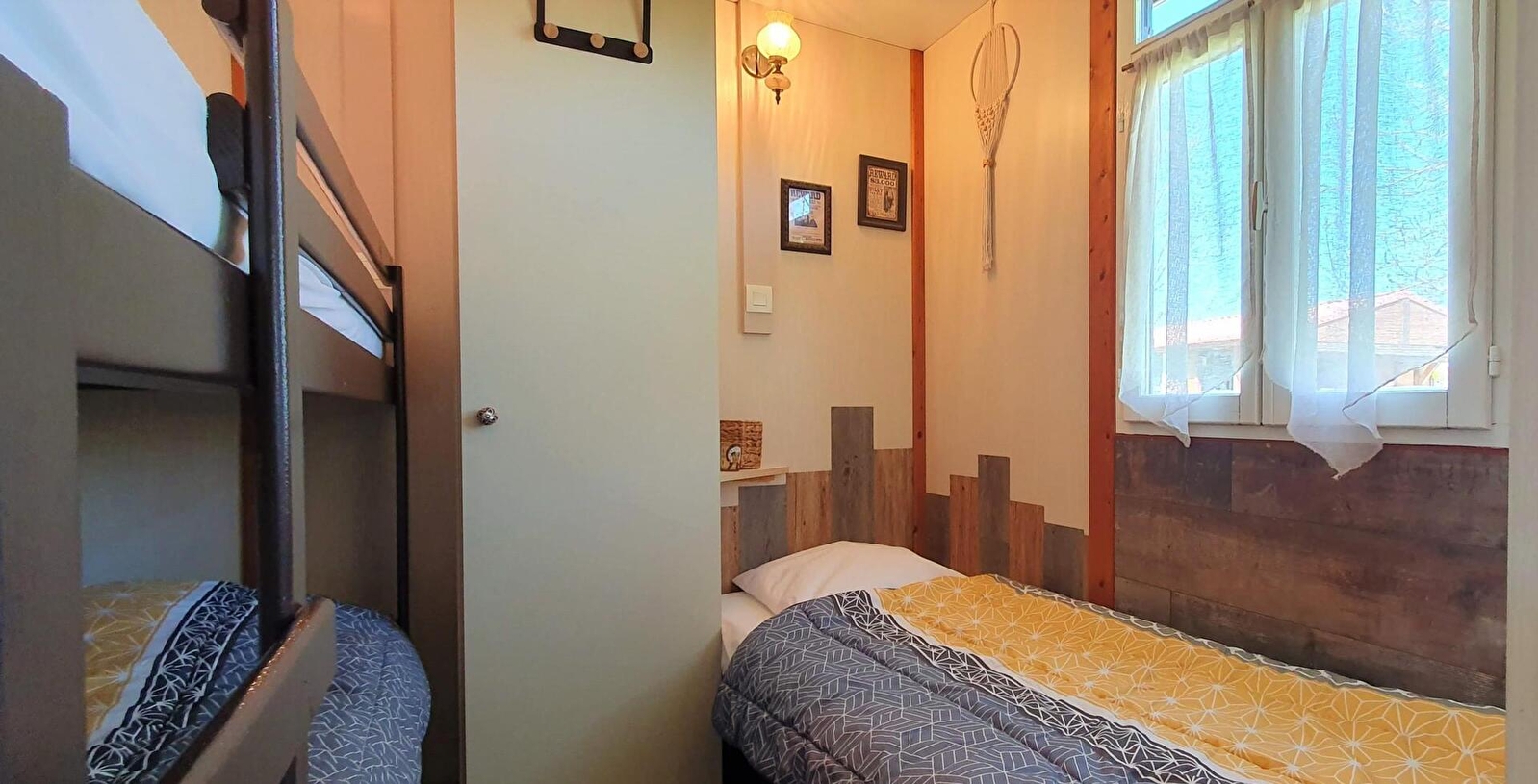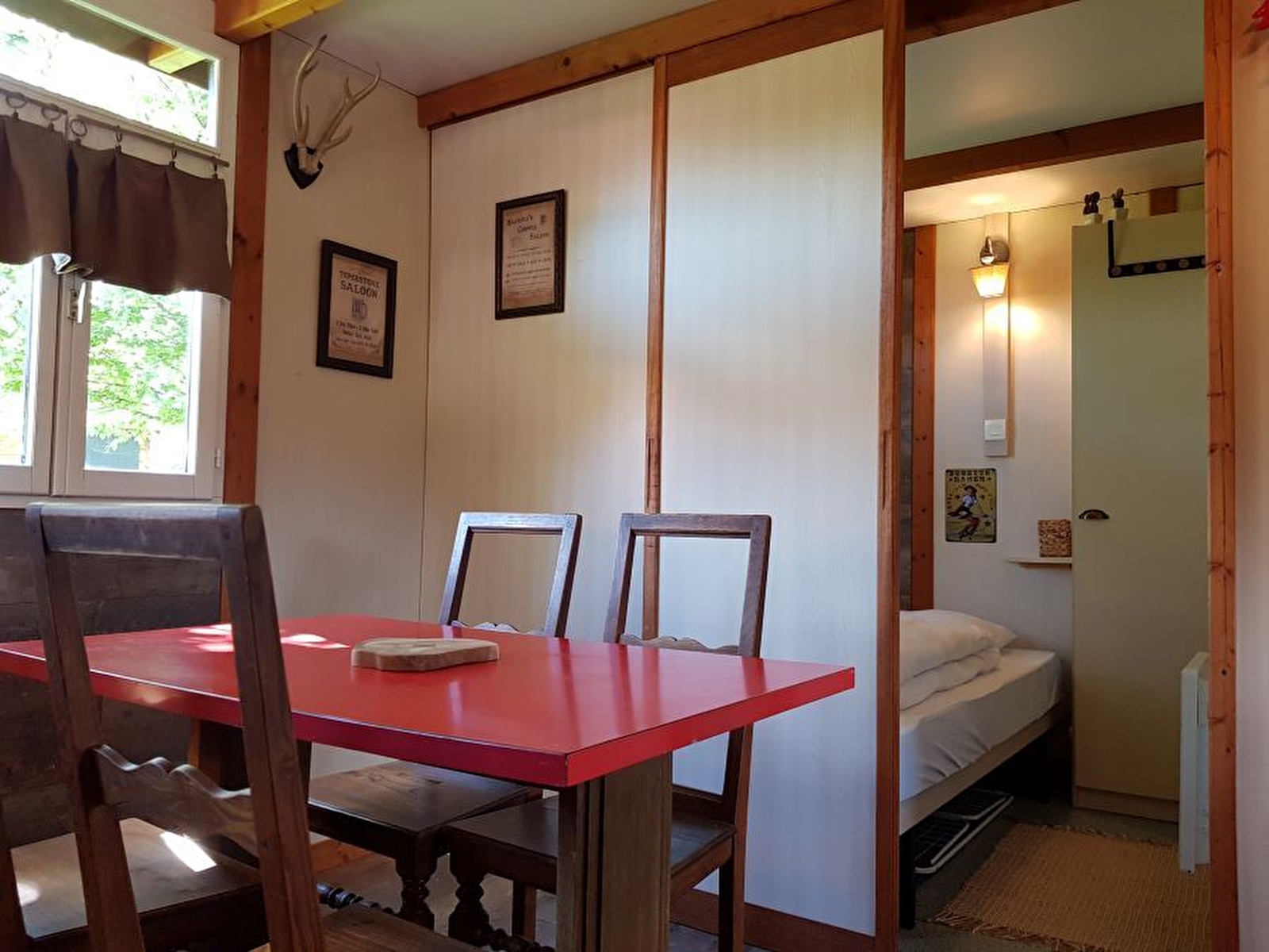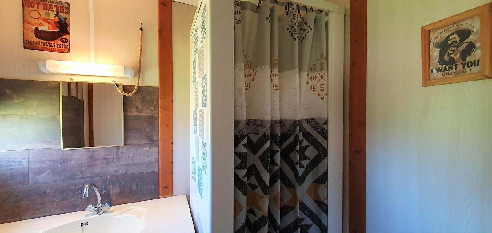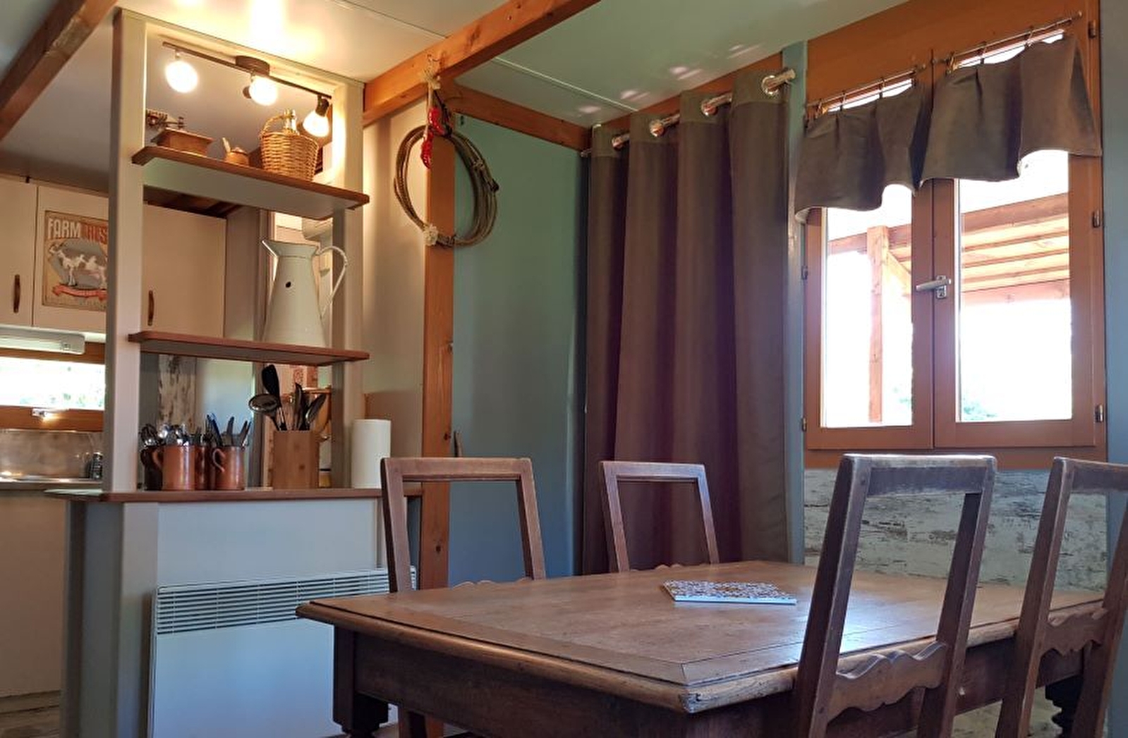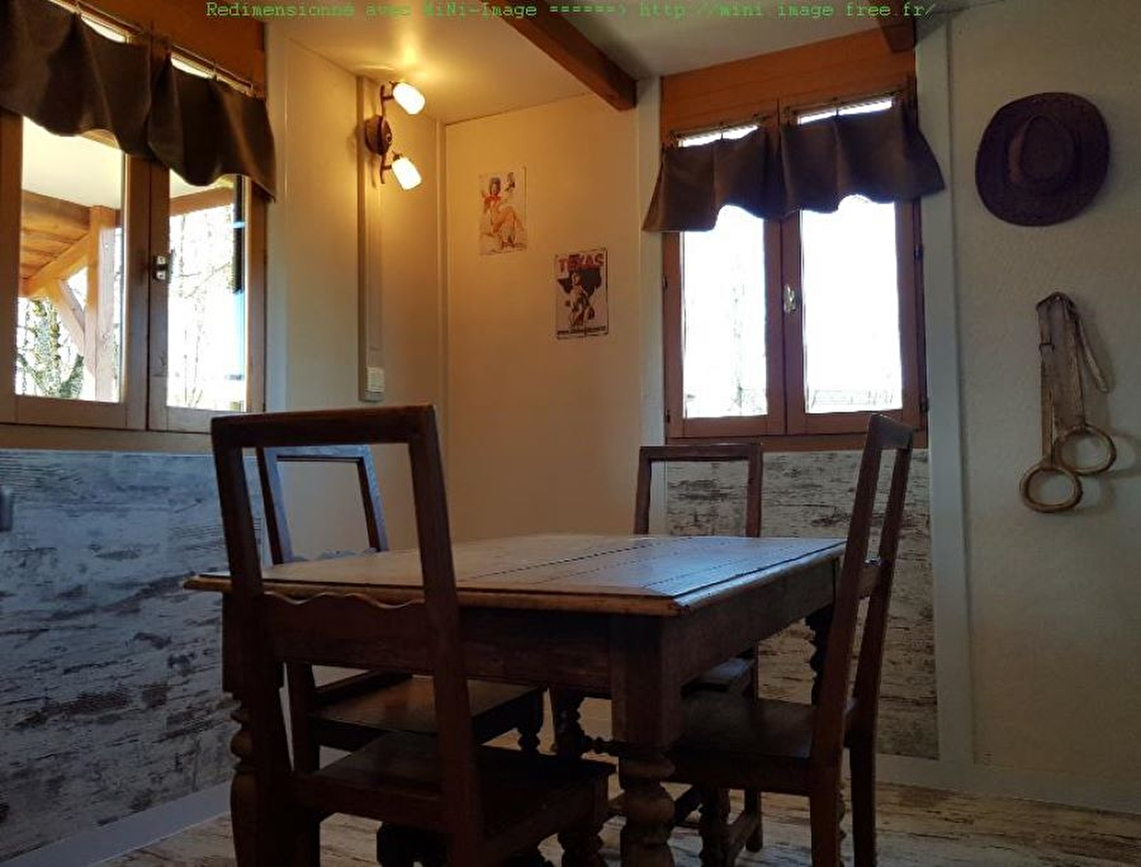 Situé au cœur d'un domaine équestre* de 12 hectares et dans un cadre naturel exceptionnel, ces hébergements type chalets vous accueillent dans un décor “western” insolite. A proximité évoluent les animaux de la ferme (chevaux, poneys, chèvres, lamas...), en toute quiétude et pour le bonheur des amoureux de la nature. Chaque chalet est composé d'une pièce à vivre avec kitchenette (plaque deux gaz, frigo table top, four micro onde, cafetière filtre, bouilloire et vaisselle nécessaire) et espace repas, une salle d'eau/wc, une 1ère chambre avec 1 lit de 140 et une 2ème chambre avec 3 lits de 80 dont 2 superposés (surface habitable : 21.70 m²), ainsi qu'une terrasse de 8.40 m². Au cours de votre séjour, vous aurez la possibilité de pratiquer diverses activités : randonnée à pieds, vélo, VTT... (départ depuis le gîte sur des pistes IGN), balades à poneys (activités proposées au sein de notre domaine dans le cadre de notre activité de "Ferme Équestre Élevage Juan"), piscine et thermes, lacs, visite de sites touristiques et culturels... ou tout simplement profiter de notre domaine pour vous reposer sur le temps d'un week-end ou durant quelques jours de vacances Notre domaine se situe entre monts et vallées, ce qui vous offre le loisir découvrir des sites nommés plus beaux villages de France (Château-Chalon, Baume-les-Messieurs), des villages pittoresques ( Poligny ville du Comté ; Arbois – son musée et ses vins ; Salins-les-Bains – ses thermes et fortifications ; Dole – la Venise Jurassienne ; Arc-et-Senans et ses salines classées au Patrimoine Mondial de l'UNESCO...), la région des lacs (Chalain,...) et des cascades (du Hérisson, des Tufs...) Animal de compagnie acceptés gratuitement et dans le respect de la charte d'accueil des animaux de "Gîte de France" (un par logement – possibilité d'accueil supplémentaire avec accord des propriétaires). Caution de 300 € par animal demandée. Pour charge de véhicule électrique un surcout sera demandé (voir avec la propriétaire)
