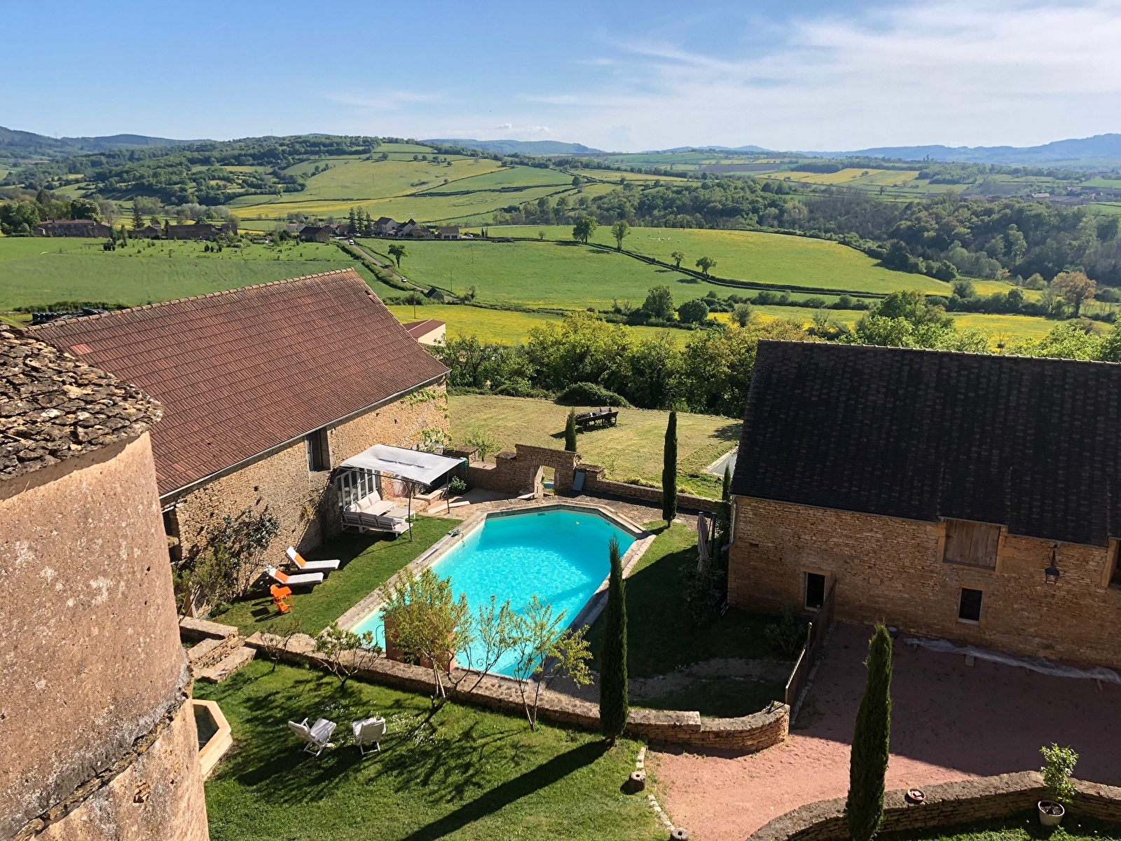 Ancienne Maison Forte du 11ème siècle, ce domaine sur 4 hectares avec prairies, vergers, vignes et forêt entoure une cour protégée commune avec une grande piscine chauffée avec vue panoramique.