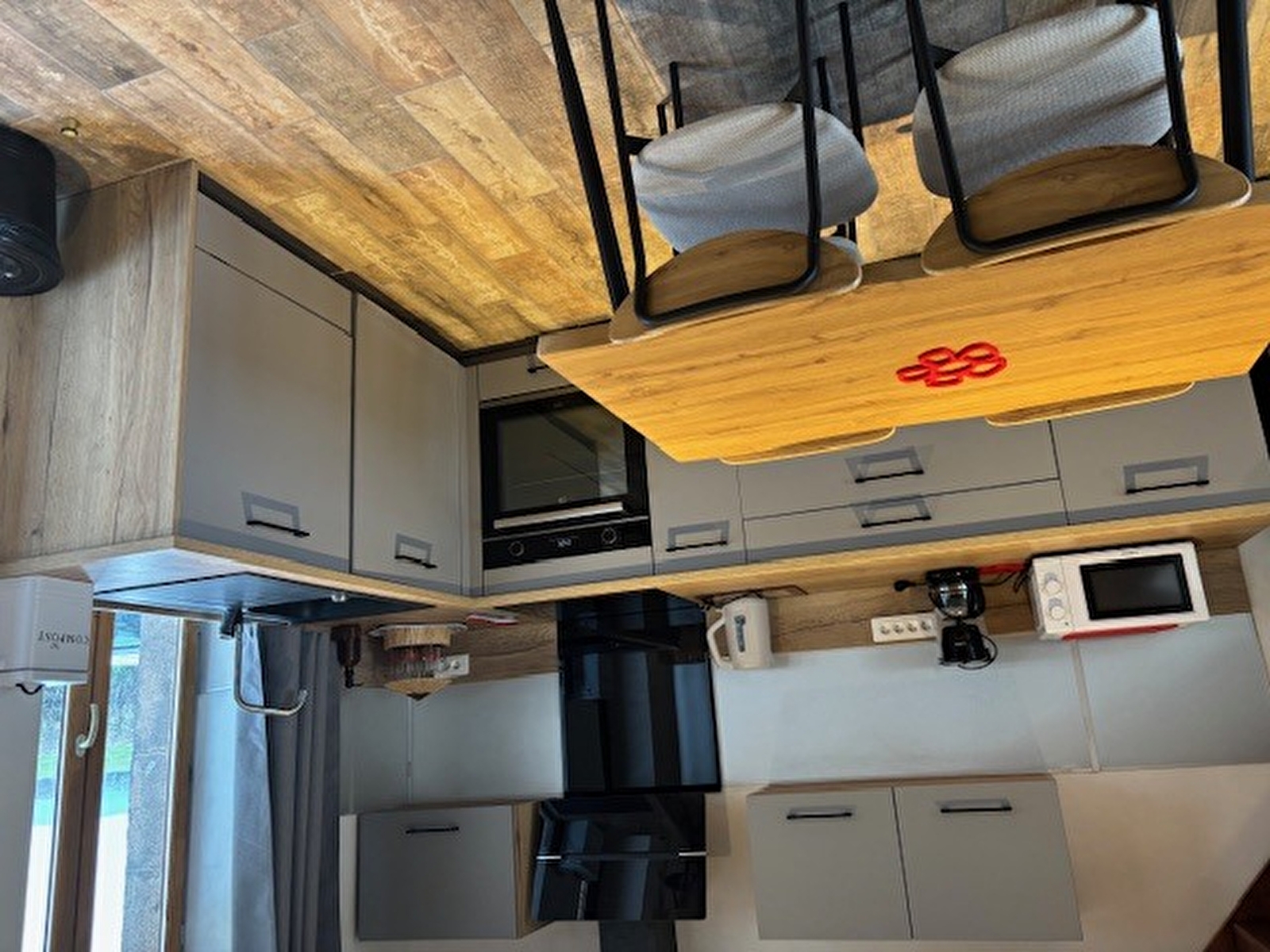 - une cuisine équipée (plaques à induction, four, lave-vaisselle, vaisselle, réfrigérateur-congélateur),