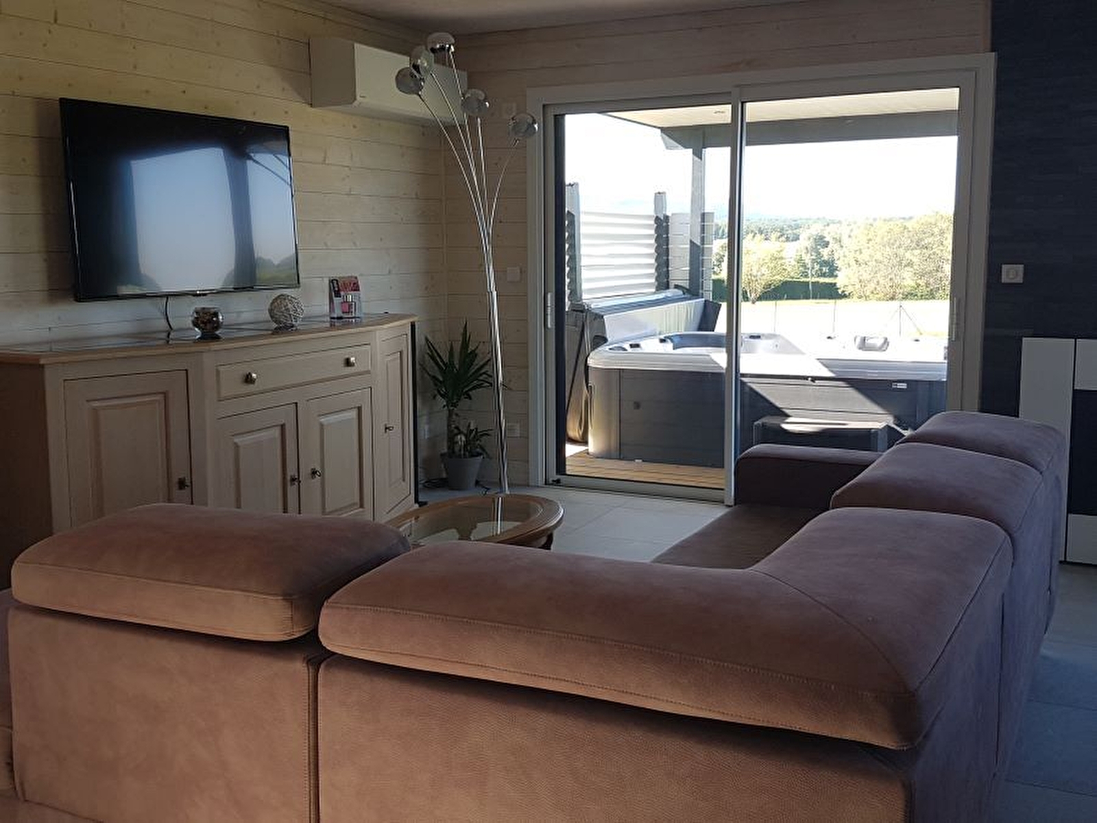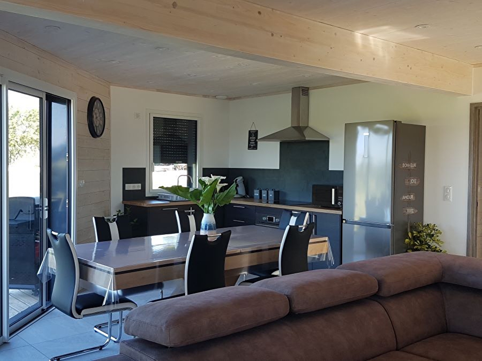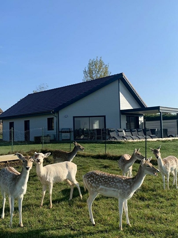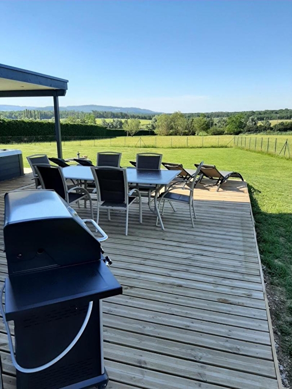 Dans un joli petit village du vignoble jurassien, à seulement quelques kilomètres de Poligny, capitale du Comté, venez séjourner dans cette maison neuve de plain-pied et profiter du calme environnant. Vaste pièce à vivre composée d'un coin salon avec canapé, télévision écran plat, chaine hifi bluetooth, poêle à pellets, et cuisine intégrée entièrement équipée. 1 chambre avec un lit de 160x200 et 2 autres chambres avec 2 lits de 90x200 (qui peuvent être accolés ou dissociés), 1 salle d'eau avec grande douche et 1 WC séparé. Terrasse avec SPA privatif ouvert toute l'année, salon de jardin et barbecue, offrant une magnifique vue sur le parc à Daims des propriétaires. Vaste terrain attenant clos. Pour votre plus grand confort, les linges de toilettes sont fournis et les lits sont faits à l'arrivée. Pour les amateurs de pêche, vous aurez accès à l'étang privé des propriétaires (prêt de matériel de pêche sur demande). Adresse à découvrir absolument, n'attendez plus pour réserver ! Le plus du gîte : climatisation réversible. 90 € de caution si les clients ne prennent pas le forfait ménage.