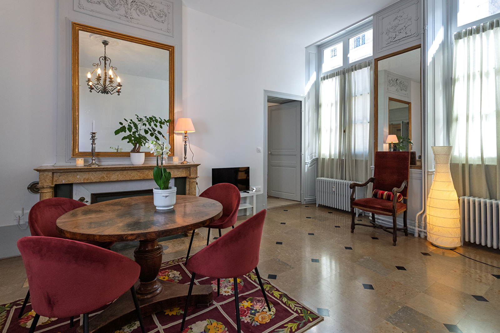 Bienvenu chez lulu vigneron. Dans un hôtel particulier du 18ème, lulu a aménagé deux suites appart de charme avec tout le confort d'aujourd'hui: cuisine suréquipée, deux salles de bain, deux chambres de luxe, et deux salons dont l'un d'eux peut être transformé en chambre. Il se fera un grand plaisir de vous offrir, le soir venu, un verre de son vin tout en contemplant le coucher du soleil et un peu plus tard le ciel étoilé dont Poligny détient le secret.
