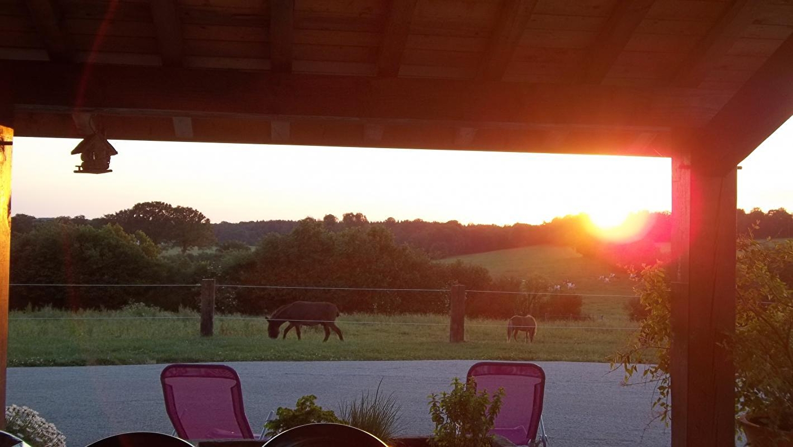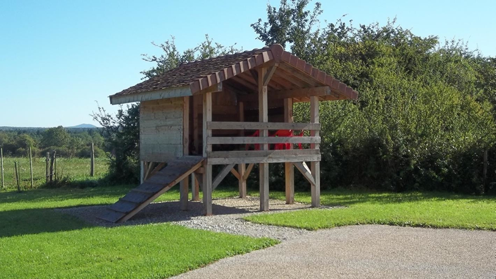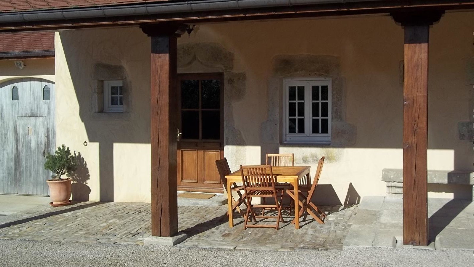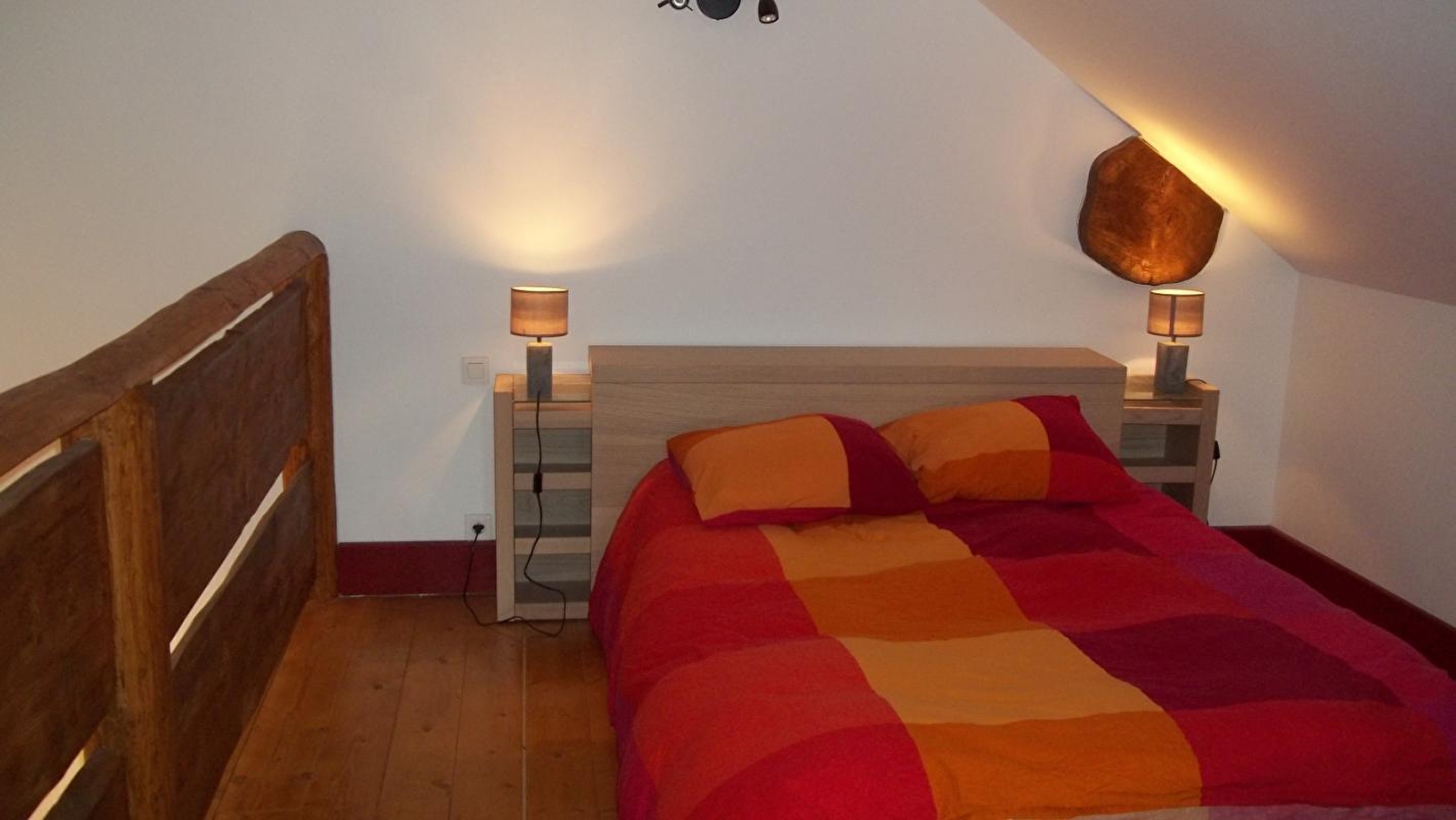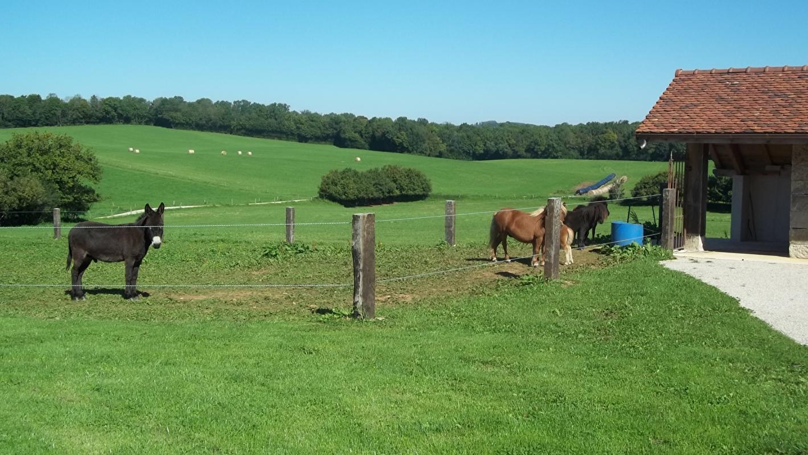 Appartement mitoyen à la maison des propriétaires, ou se trouve également un autre gîte avec entrée indépendante, terrasse avec salon de jardin et barbecue, vue panoramique sur la nature dans un environnement reposant. Ambiance authentique avec plafond à la française, poutre de chêne, vieilles pierres. Accès direct à la pièce à vivre avec cuisine équipée, coin salon avec clic-clac, salle d'eau douche à l'italienne, WC. A l'étage: une chambre mezzanine (non fermée) avec 1 lit de 140 et 1 lit de 90, TV écran plat, wifi. Location de draps 20€ avec linge de toilette inclus. Cabane en bois pour enfants, poneys sur le terrain.