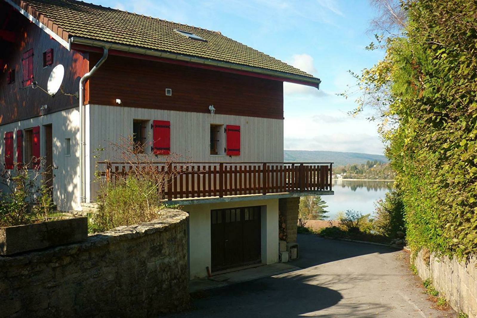 Maison indépendante de type chalet au bord du lac de Chalain. Au rez de chaussée, grande pièce à vivre composée d'un salon avec TV, cheminée, salle à manger et cuisine équipée, une salle d'eau avec douche et un wc. A l'étage : mezzanine avec canapé convertible 2 personnes, salle de bain avec baignoire, CH1 : 2 lits 1 pl superposés, CH2 : 1 lit 2 pl 160cm, CH3: 1 lit 2 pl 160cm (divisible en 2 lits de 80cm sur demande) et un wc indépendants. Terrain attenant clos avec salon de jardin et barbecue en été, cour et grand balcon offrant une magnifique vue sur le Lac. Garage privatif fermé. Électricité : 15 kw/jour offert.