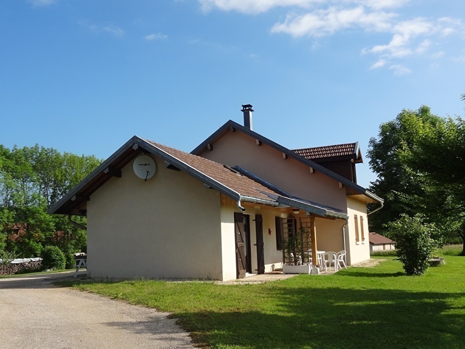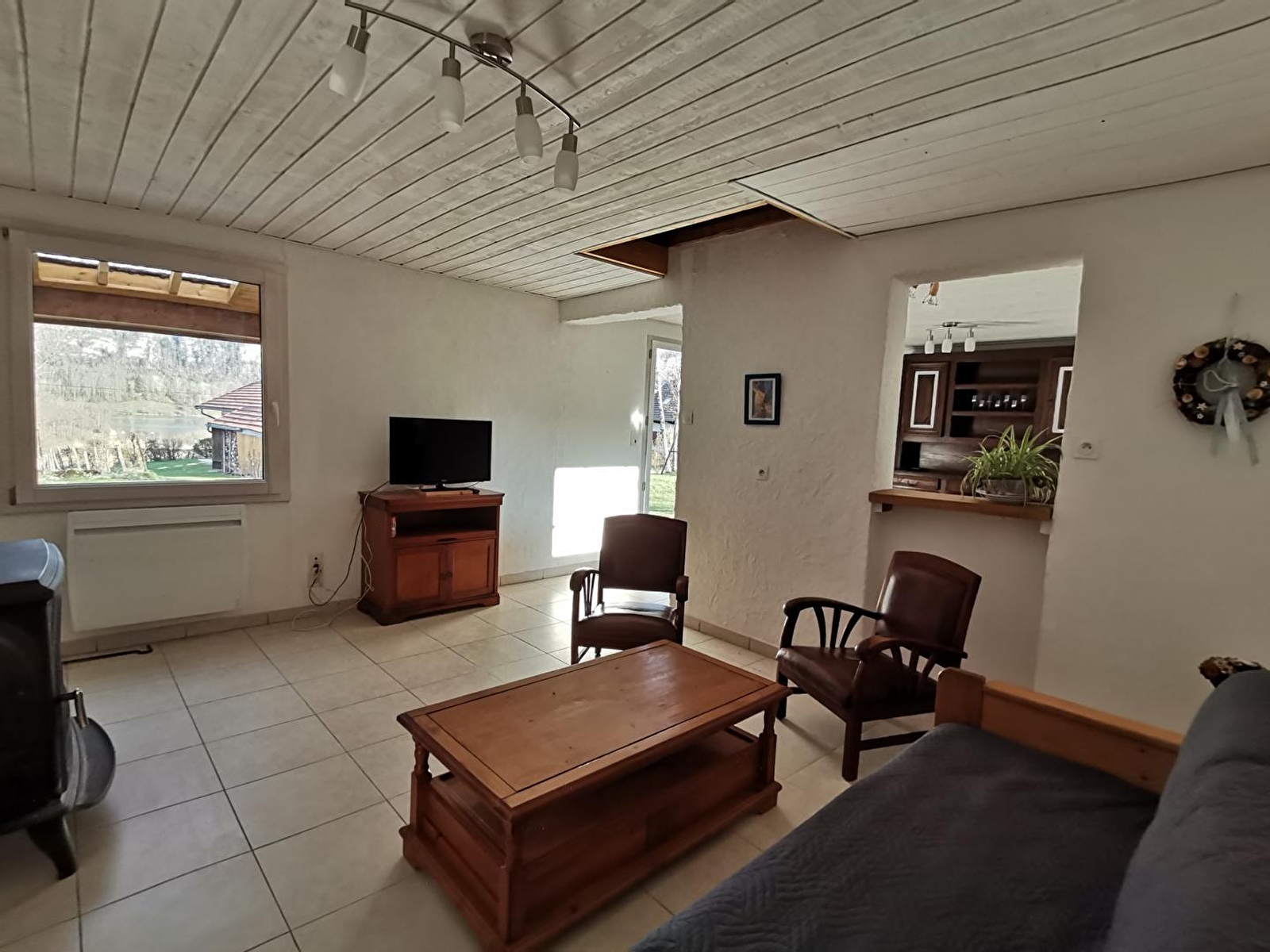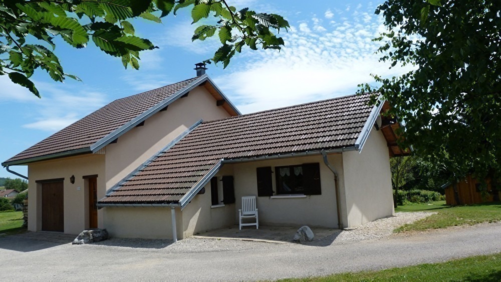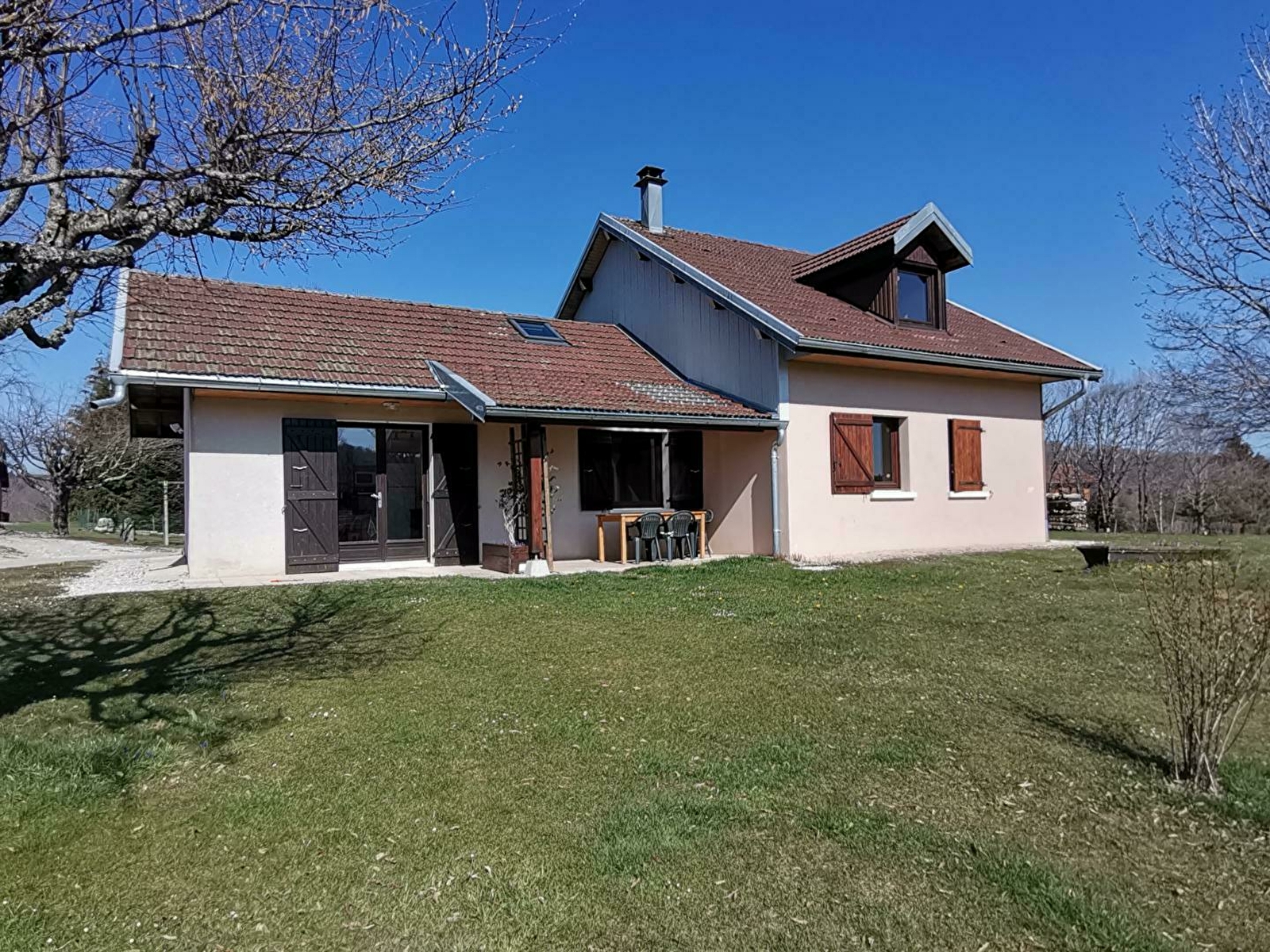 Maison indépendante située au coeur de la région des lacs et cascades, au pied et avec vue sur le lac d'Ilay. Maison intérieur bois avec terrasse couverte pour le salon de jardin, barbecue. Garage pour rangement vélos et matériel divers skis...),avec parking privatif. Grand jardin attenant avec aire de jeux. Au rez de chaussée: cuisine équipée ouverte sur salon-séjour avec fourneau à vitre apparente, véranda fermée avec coin salle à manger. ch1: 1lit 2pl, Ch2 : 1lit 1pl, salle de bain, wc indépendants. A l'étage: un coin salon, un lieu bureau, ch3: 2lits 1 pl, salle d'eau en option avec supplément de 30 €/semaine. Chauffage bois et électrique (forfait bois variant de 25 à 45€ selon la saison). Un seul animal accepté de cat 3 ou de petite taille (pas de chat) avec une caution