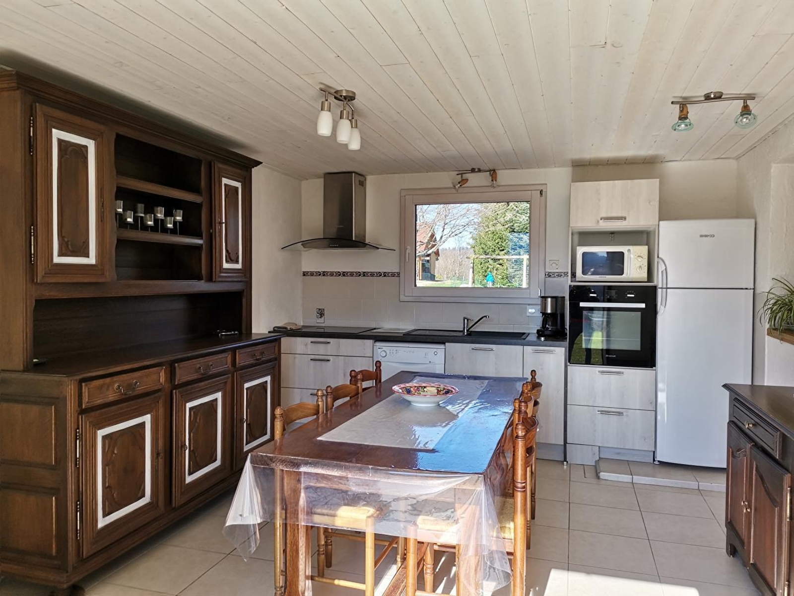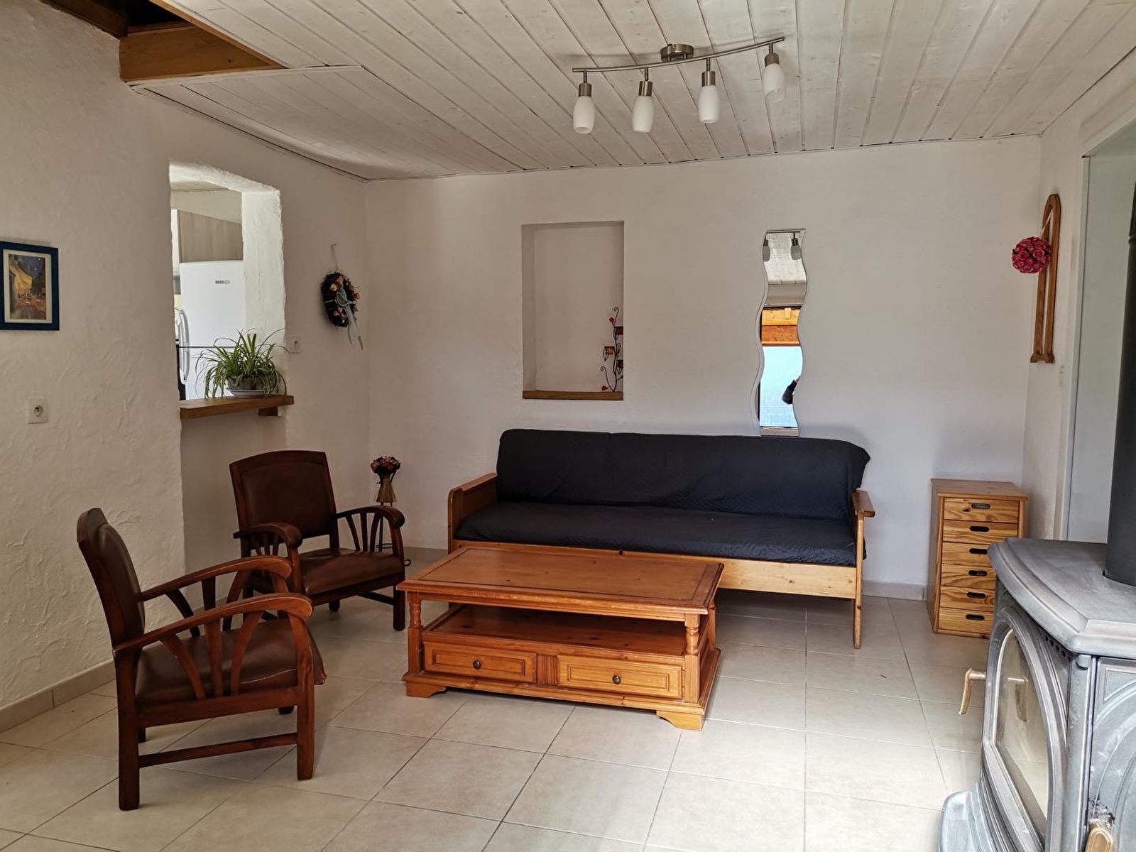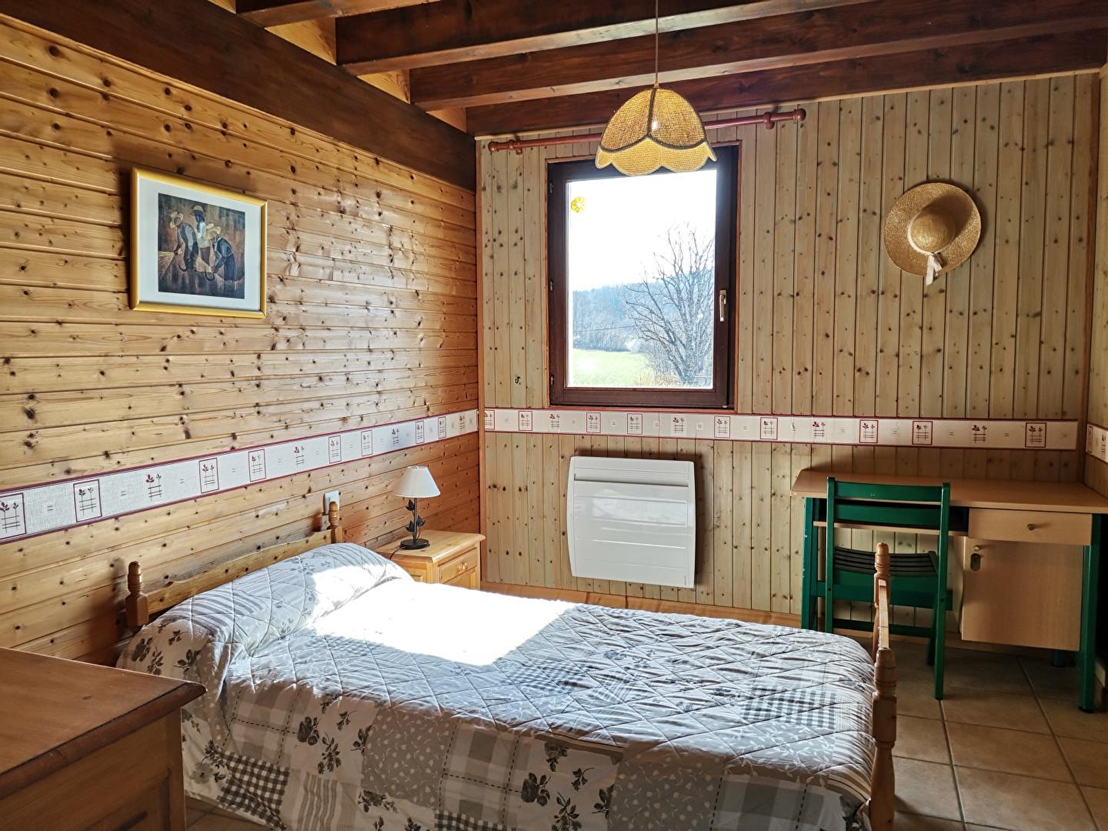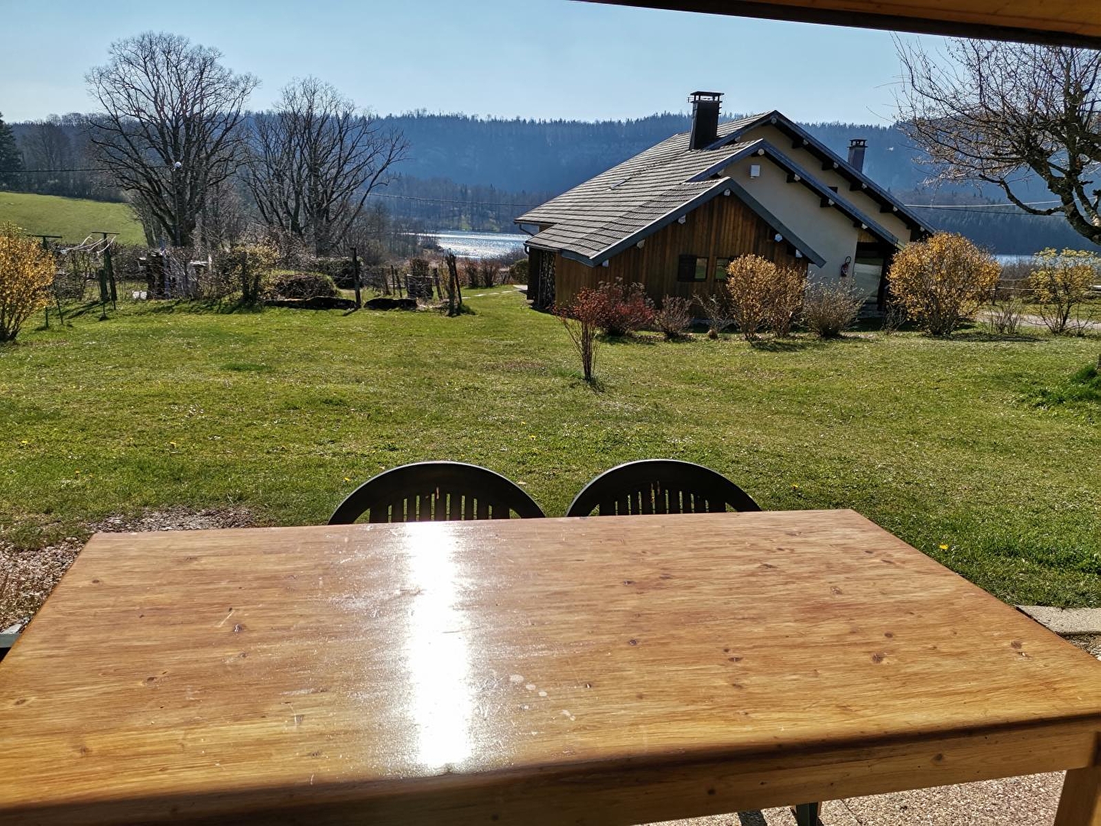 Maison indépendante située au coeur de la région des lacs et cascades, au pied et avec vue sur le lac d'Ilay. Maison intérieur bois avec terrasse couverte pour le salon de jardin, barbecue. Garage pour rangement vélos et matériel divers skis...),avec parking privatif. Grand jardin attenant avec aire de jeux. Au rez de chaussée: cuisine équipée ouverte sur salon-séjour avec fourneau à vitre apparente, véranda fermée avec coin salle à manger. ch1: 1lit 2pl, Ch2 : 1lit 1pl, salle de bain, wc indépendants. A l'étage: un coin salon, un lieu bureau, ch3: 2lits 1 pl, salle d'eau en option avec supplément de 30 €/semaine. Chauffage bois et électrique (forfait bois variant de 25 à 45€ selon la saison). Un seul animal accepté de cat 3 ou de petite taille (pas de chat) avec une caution