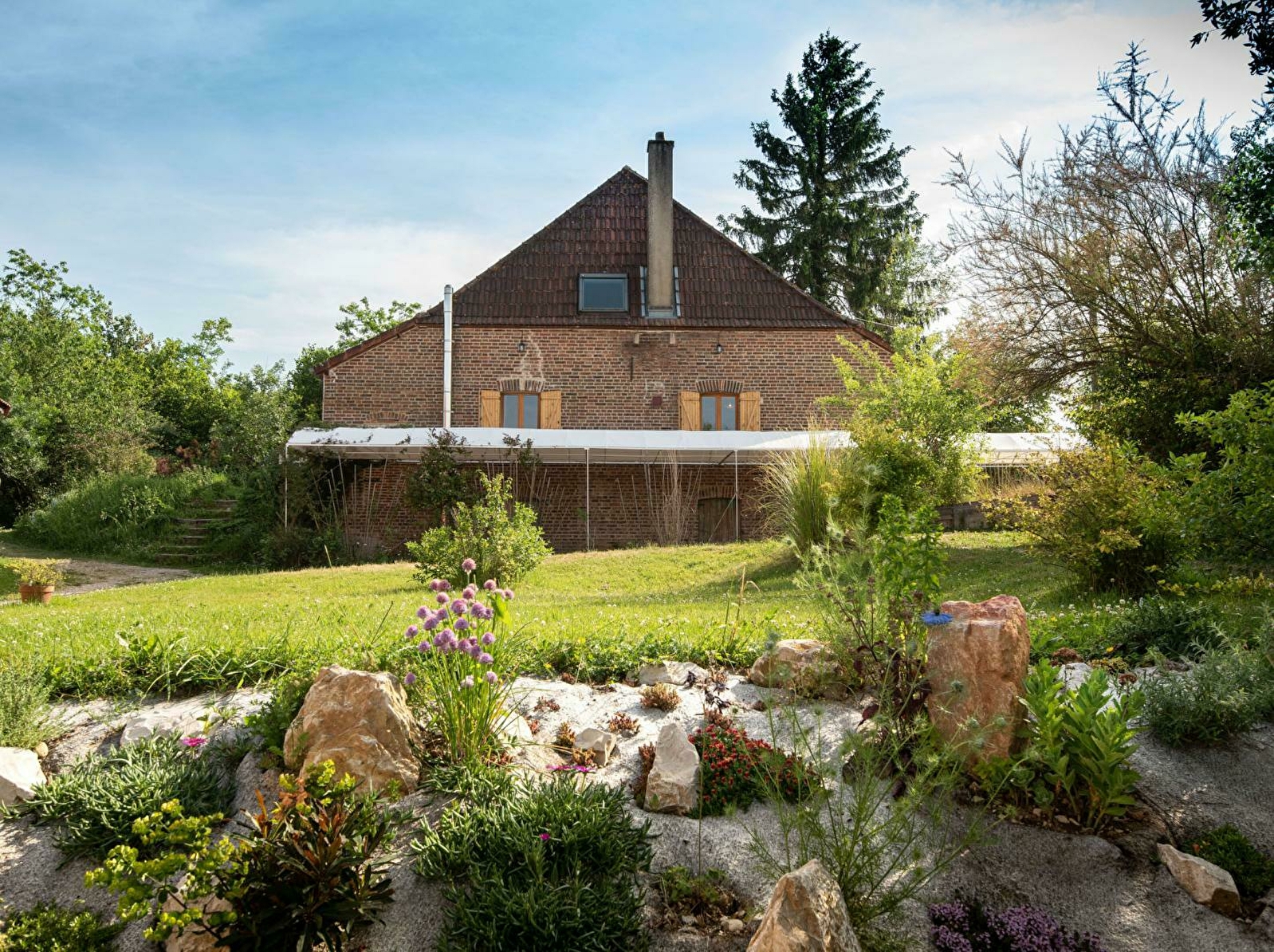 Yvan, expert en éco-construction et Ramatara, professeur de yoga, vous accueillent dans une authentique maison de pays de 1882 rénovée avec soins dans une démarche écologique globale, sur un vaste domaine naturel de 7 ha. Paisible petit hameau typique niché au calme en pleine campagne bressanne sur les rives de la Seille, remarquable écosystème classé « Zone Natura 2000 » (réserve d'oiseaux migrateurs, espèces végétales rares, nombreux poissons dont les célèbres silures, animaux et faune sauvage…). Lovée au creux d'un agréable écrin préservé de nature et verdure en lisière de prairies & forêts, aménagée dans un esprit de permaculture et de « micro ferme » sans nuisance (âne, poney, poules, canards, oies, ruches…), la propriété dispose d'un espace de baignade naturelle (partagé), d'une salle bien-être avec hammam & salle de massage (prestations professionnelles payantes) et d'un parcours pédestre en forêt. Chaleureux cachet campagnard, cosy et douillet. Ambiance zen et douce. Large terrasse exposée et ombragée en gravier jouxtant un jardinet privé.