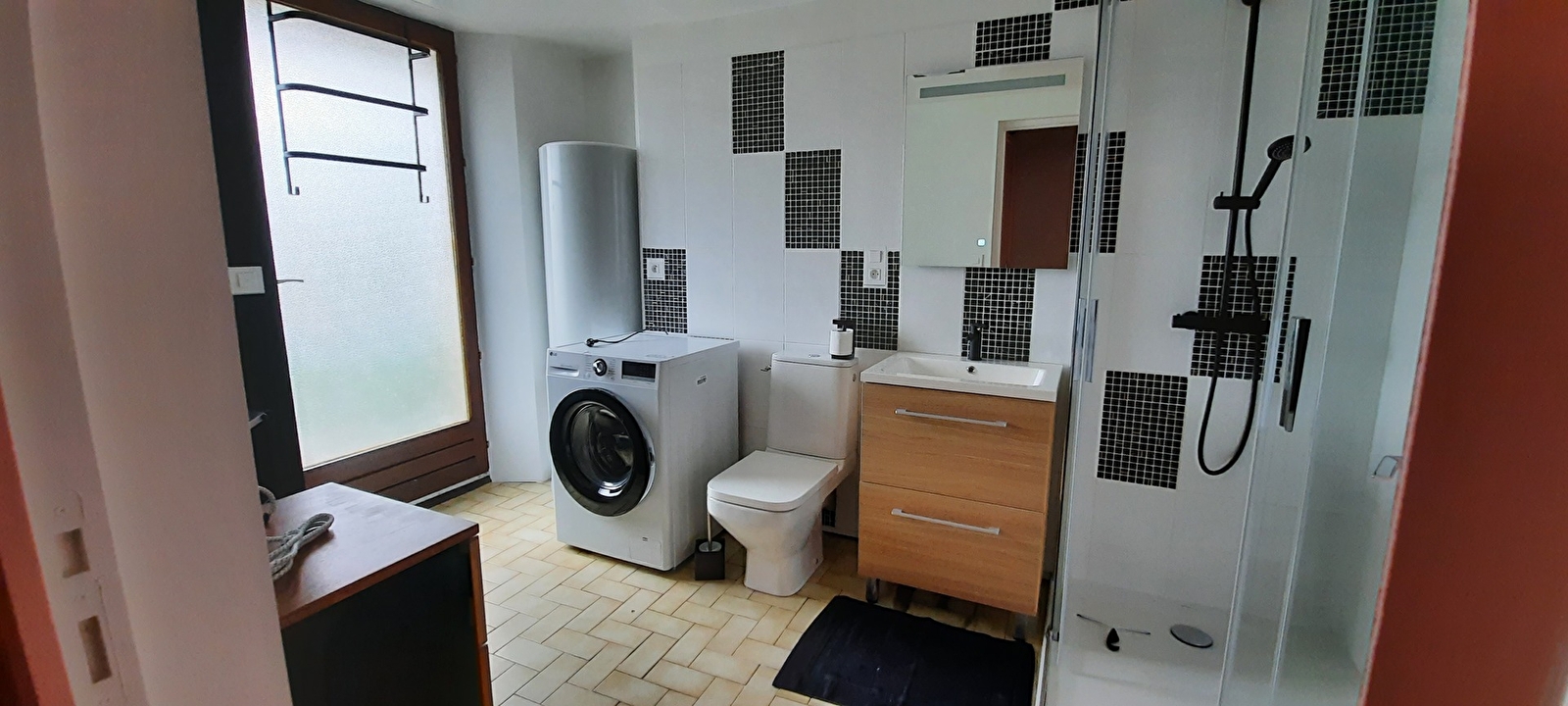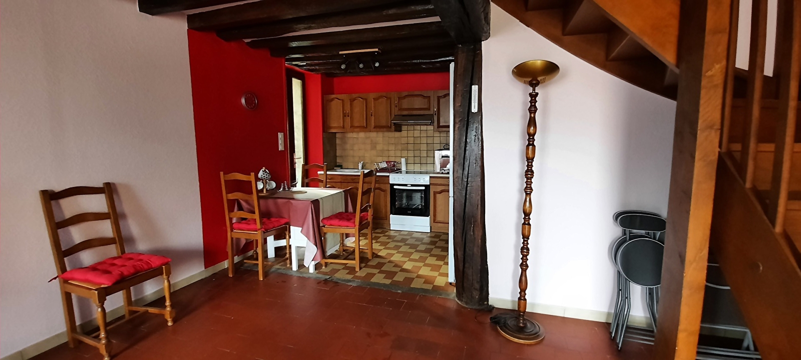 La maison, sur 2 niveaux, se compose au rez-de-chaussée d'un séjour-salle à manger avec une cheminée, d'une cuisine équipée ( + canapé convertible).
