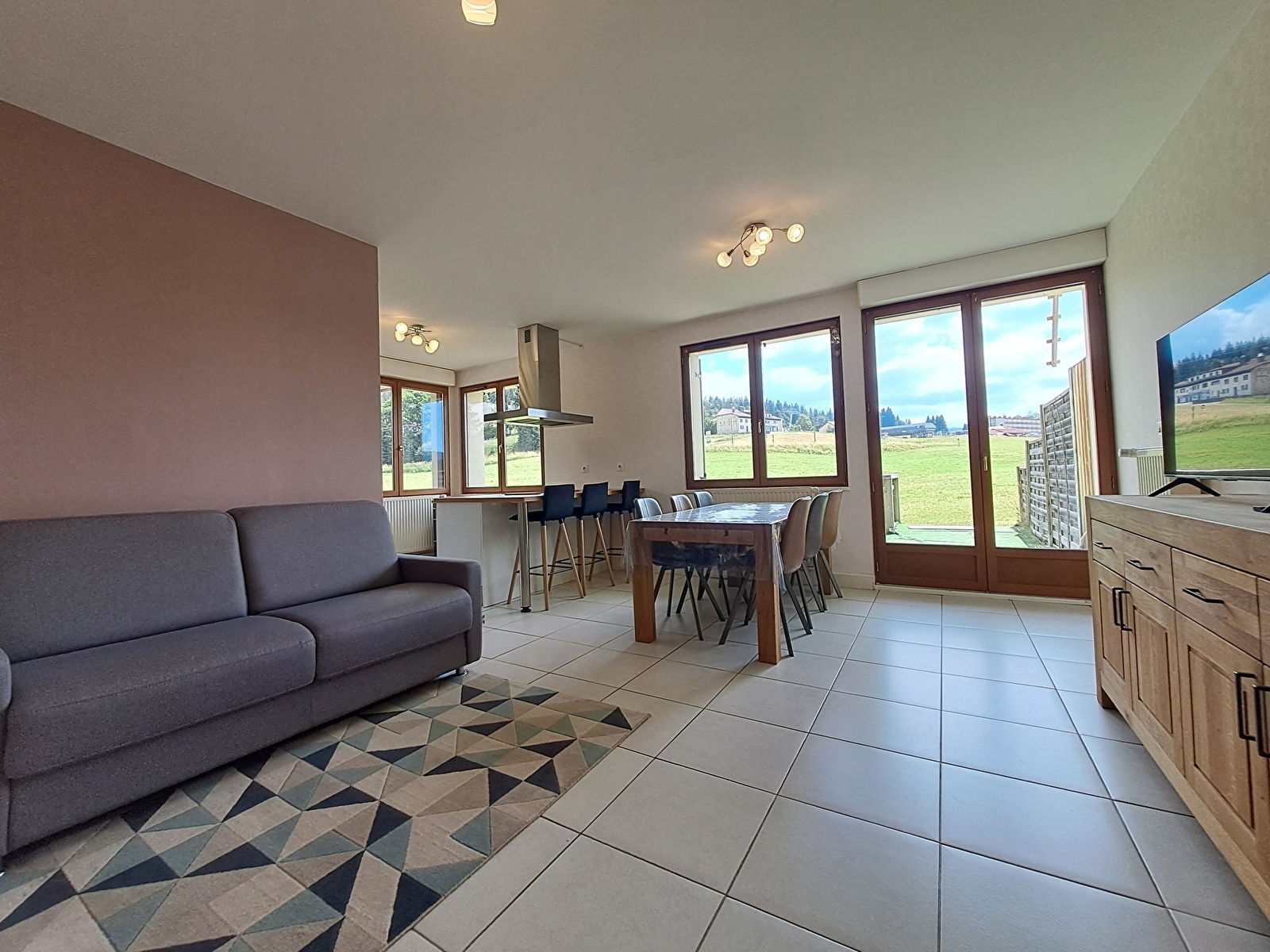 Situé en face du domaine skiable des Jouvencelles au 1er étage de la résidence Felix Peclet cet appartement de 72m2 est composé d’une entrée avec rangement, d'une pièce à vivre avec coin cuisine équipée ouverte sur le séjour et coin salon avec canapé convertible, d'une chambre avec un lit en 140 et lits superposés et d'une seconde chambre avec un lit en 140cm.