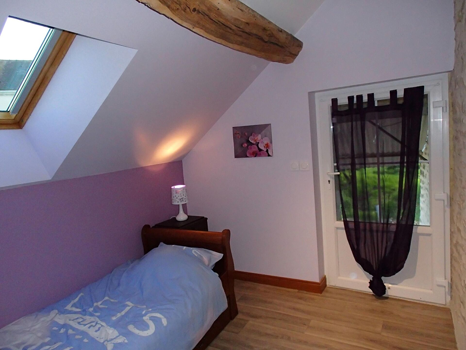 1er étage : cabinet de toilette avec WC, 1 grande chambre 4 personnes (1 lit 140 et 2 lits 90), 1 chambre avec lit gigogne pour 1 ou 2 personnes avec un accès direct sur l'extérieur par son escalier en pierre et vue sur la campagne verdoyante. Chauffage central au fioul au sol au rez de chaussée, radiateurs au 1er étage. Possibilité de ranger vélos si besoin dans une petite dépendance attenante à la maison. 2 animaux maximum.
