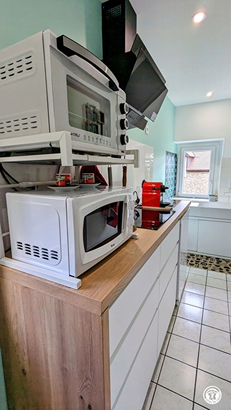 Au coeur du village viticole de Marsannay-la-Côte, à proximité de la place de l'église et des commerces, appartement entièrement rénové, situé au 1er étage (13 marches) d'une belle maison vigneronne comprenant : 1 salle à manger ouverte sur salon, TV, wifi, 1 petite salle d'eau avec douche italienne, 2 chambres avec chacune 1 lit de 140 cm, 1 petite cuisine entièrement équipée (cafetière Nespresso), 1 WC indépendant. Sur le palier : 1 buanderie avec lave-linge. Lit bébé pliant, chaise haute et baignoire bébé à disposition. Jardin non attenant avec salon de jardin. 1 place de parking privative. Possibilité de laisser 2 vélos ou 2 motos à l'abri dans le garage fermé des propriétaires.