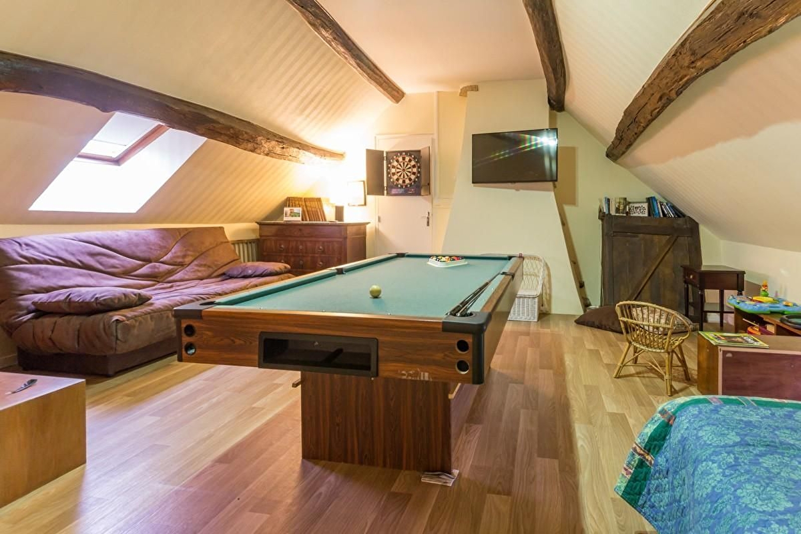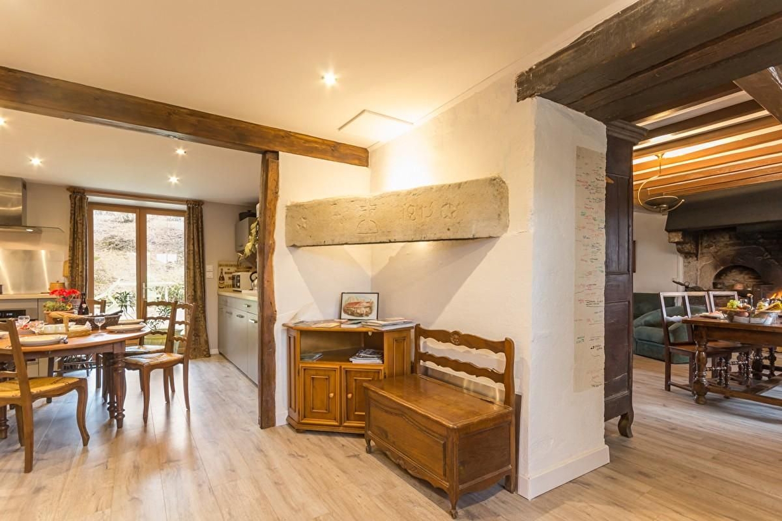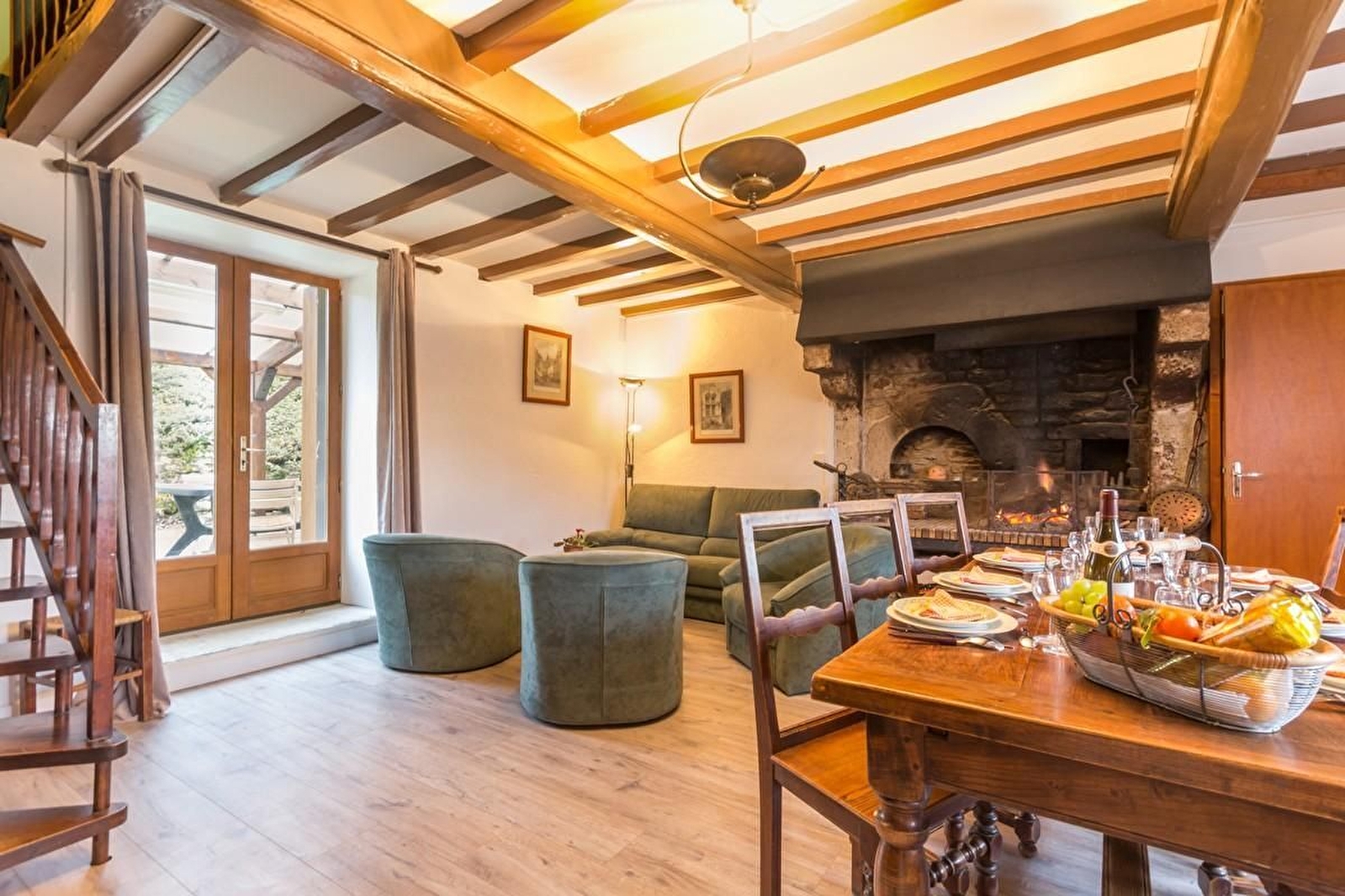 Rez-de-chaussée : cuisine équipée avec poêle à granulés et salle à manger avec cheminée ouverte. Une chambre avec un lit 90. Salle d'eau et WC séparé. A l'étage :une mezzanine avec 2 canapés convertibles pour 2 personnes. 2 chambres avec un lit 140 et 1 lit bébé chacune. 2 chambres avec 2 lits 90 chacune également. Salle d'eau et WC indépendant. Parking et potager à disposition devant la maison. Terrasse à l'arrière sans vis à vis et couverte sur 30 m². Grand espace jardin surélevé non clos avec balançoire, petit toboggan