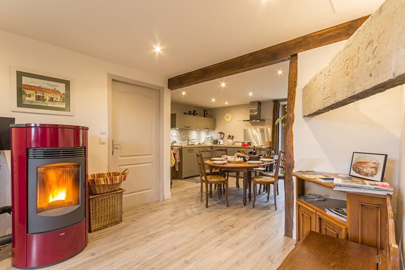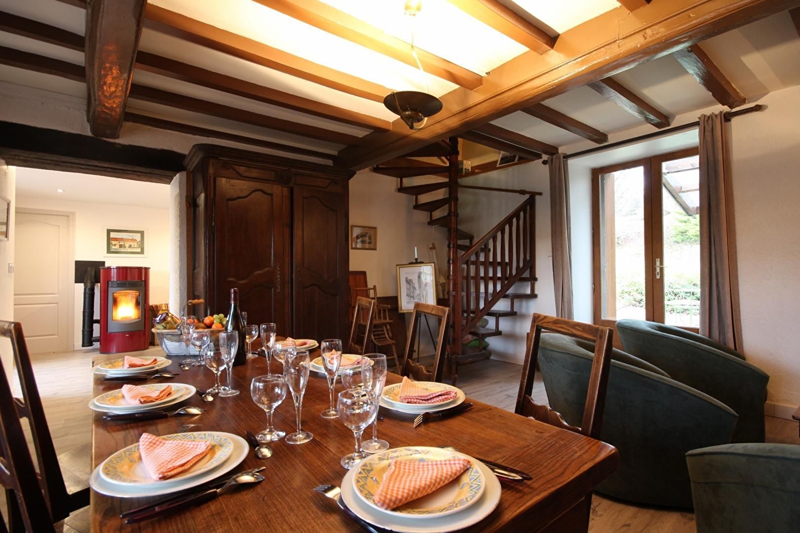 Linge de toilette : 5 € pour le séjour par personne. Brouette de bois : 10 €. Sac de granulés : 6 €. Chauffage électrique et électricité selon relevé de compteur (8 kWh/jour inclus).1 sac par jour de granulés offert et bois offert si consommation raisonnable. Animaux non admis dans les chambres. 2 chaises pour bébé.
