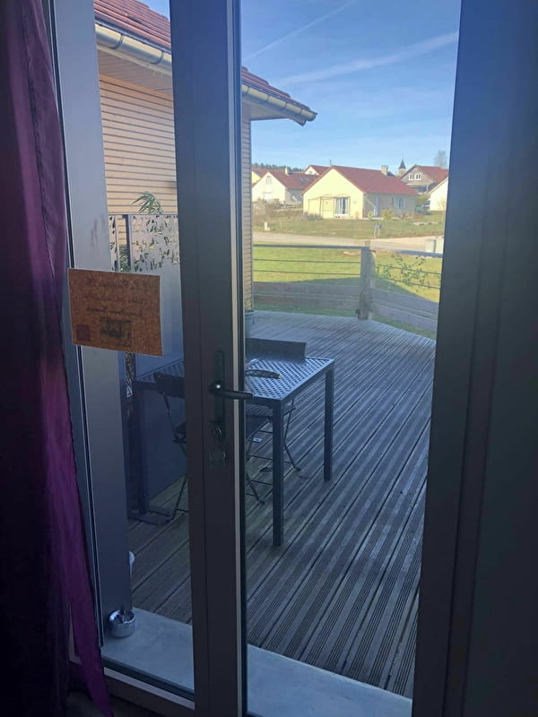 Chambre studio privé de 17 m² dans maison neuve ossature bois située dans un petit village aux portes du Haut Jura. Inclus accès à l’Espace détente Parenthèse M, attenant à la chambre (Jacuzzi® Sauna Hammam, installations professionnelles, nudité obligatoire) de 19H30 à 22H (horaires approximatifs et modulables en fonction de la fréquentation du salon).