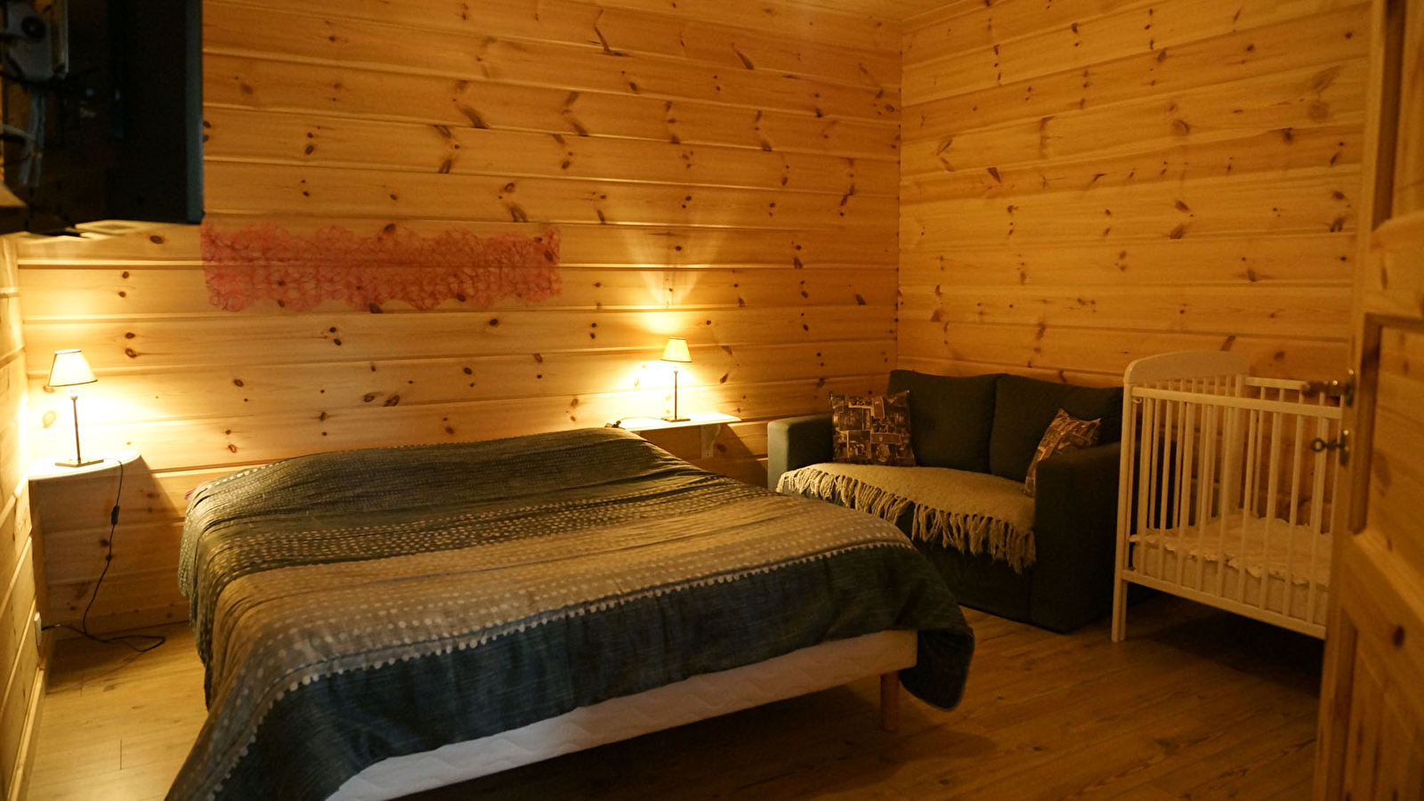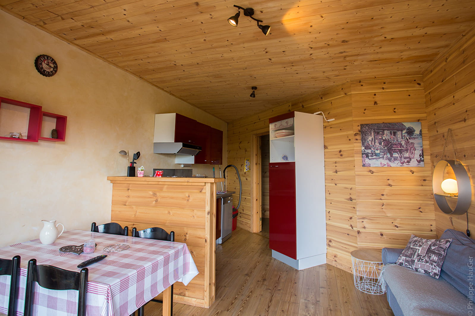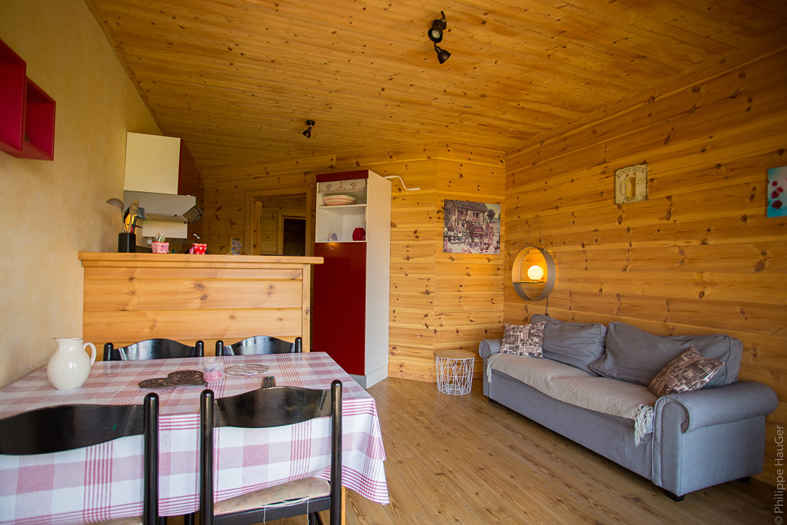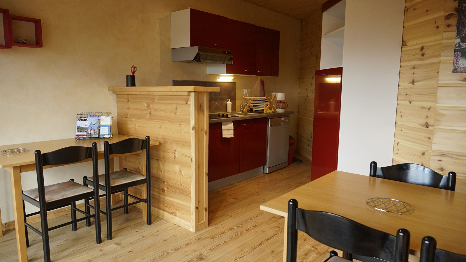 Dans un écrin de verdure, gîte aménagé au rez-de-jardin d'un grand chalet abritant également une auberge.