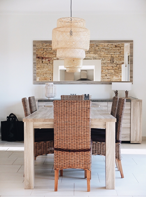 - Au Rez-de-chaussée : cuisine toute équipée, séjour lumineux avec salon, salle à manger et poêle à bois, buanderie, WC avec lave-mains.