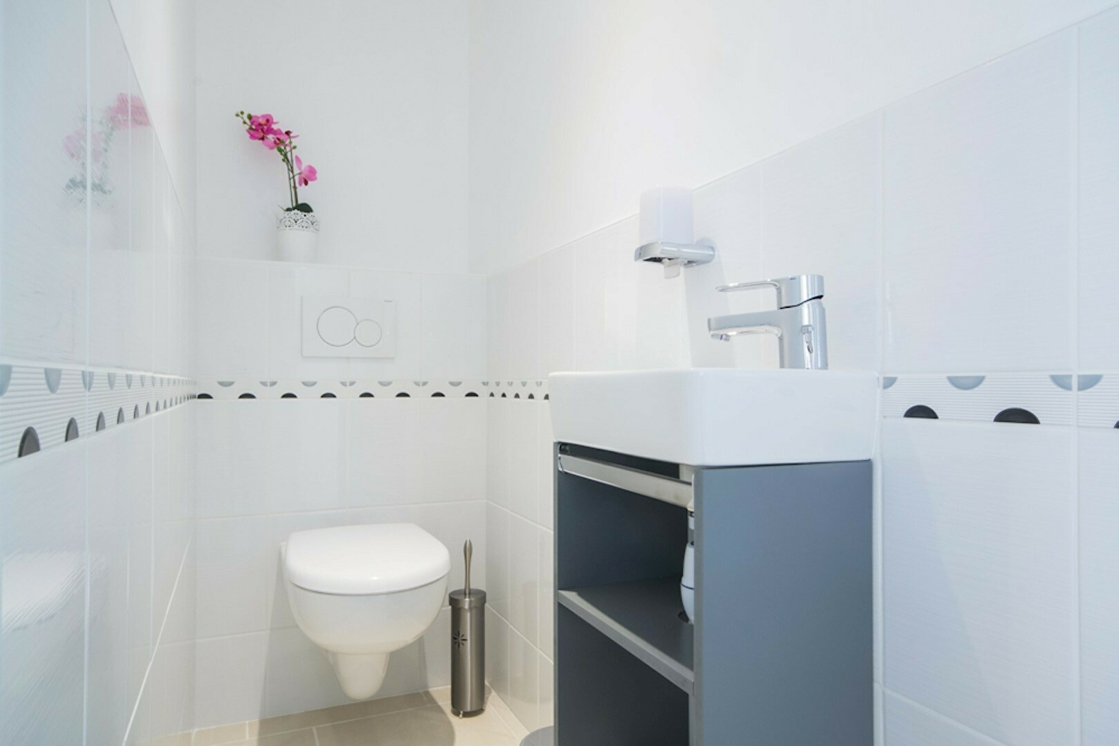 - A l'étage : 3 chambres spacieuses et climatisées (2 lits 160 et 1 lit 140), 2 salles de douche dont une avec WC et un 3ème WC séparé.