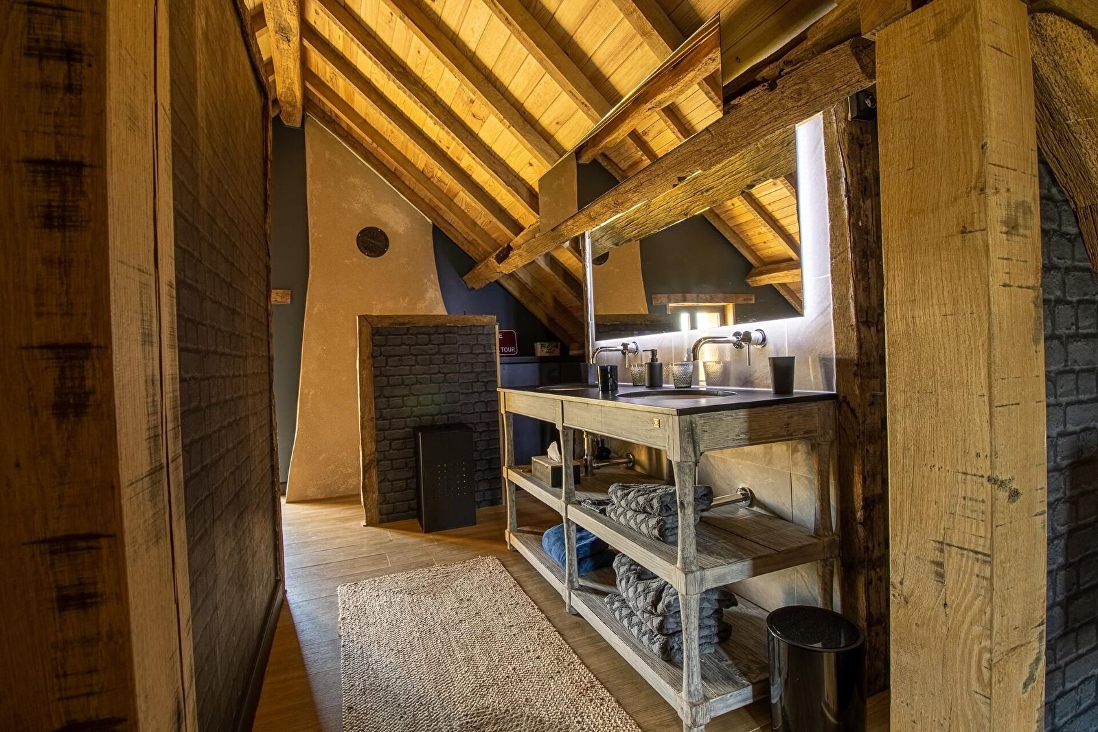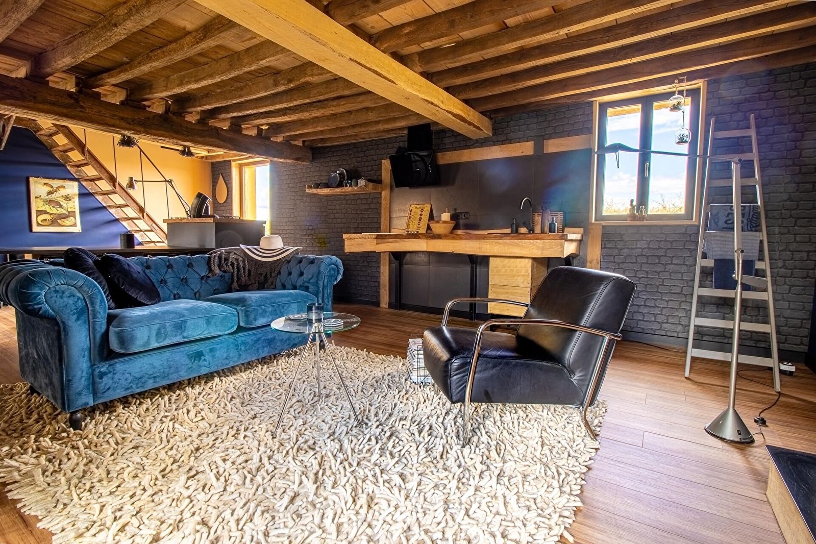 La maison de vacances dispose d’une cuisine ouverte sur la pièce à vivre cocooning à la décoration recherchée avec poêle à bois, d’une chambre à l'étage équipée d'un lit grande dimension 160x200, climatisation, avec une grande salle d'eau ouverte et wc.