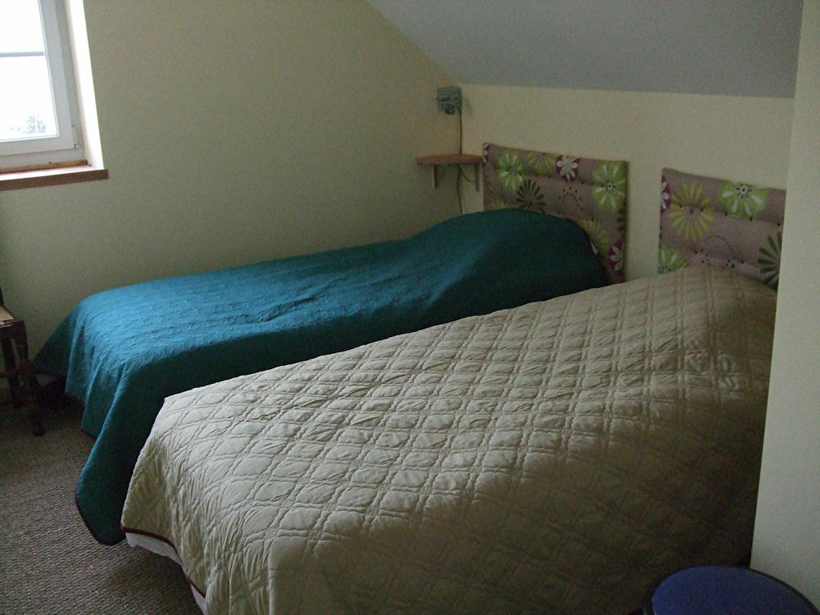 Notre gîte dispose de 2 chambres : 1 avec lit 140x90 et l'autre avec 2 lits de 90x190 ainsi qu'un couchage d'appoint sur BZ.