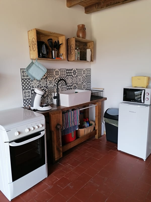 Vous disposerez d'une cuisine, coin repas et salon, une salle de bain avec douche à l'italienne, et d'une chambre.