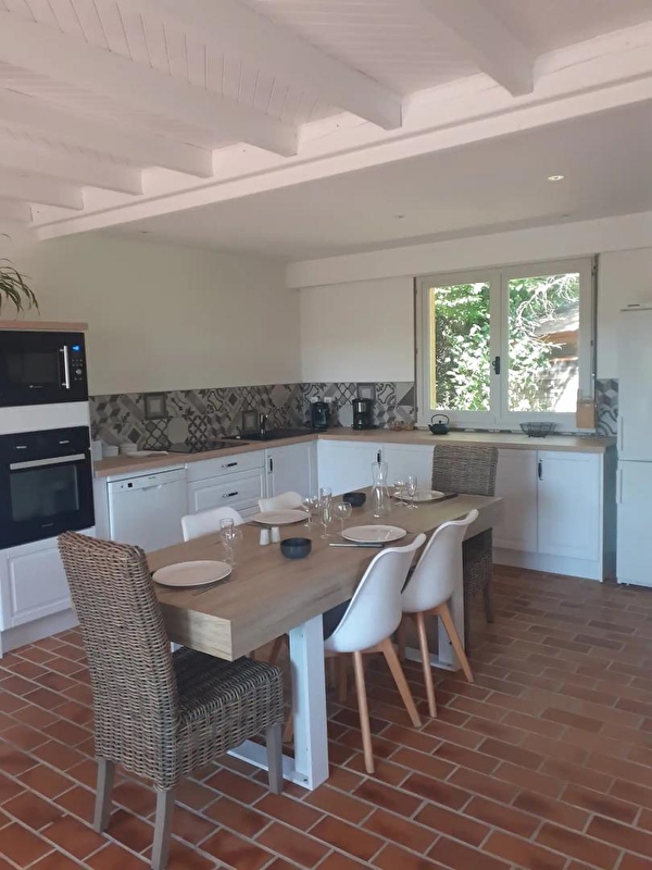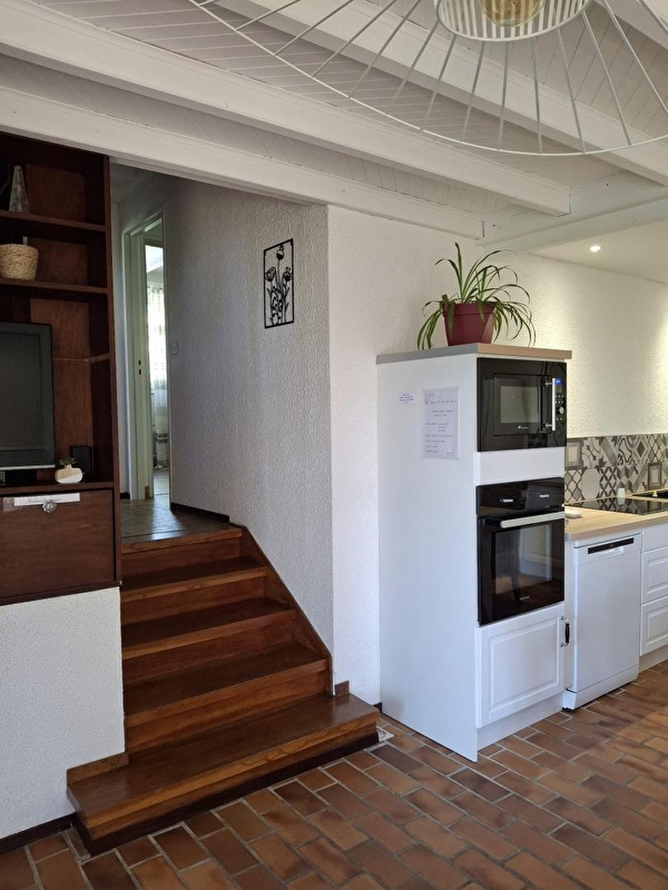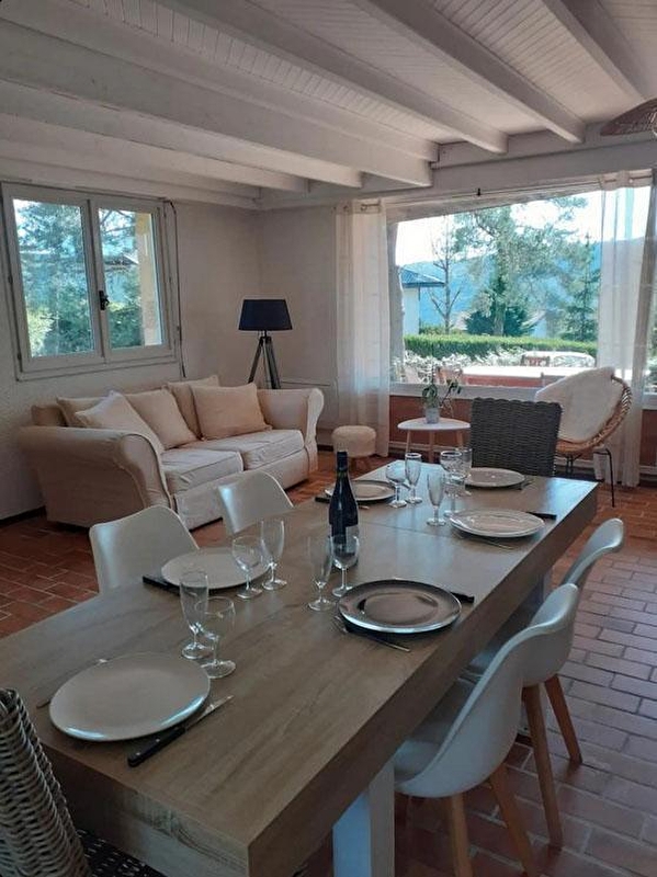Sur les hauteurs de Maisod, au calme et à proximité immédiate du lac de Vouglans, cette maison se compose d'une pièce de vie avec cuisine toute équipée, d'un coin salon avec canapé/TV et poêle à bois, d'un coin bibliothèque avec jeux enfants et livres, d'une chambre avec 1 lit double (140*190), d'une chambre avec un lit double (160*200), d'une salle de bain avec baignoire et d'un WC indépendant. La 3ème chambre, uniquement accessible par l'extérieur et aménagée en sous-sol (hauteur de plafond = 185 cms) se compose d'un lit double (140*190), d'un coin kitchenette et d'une salle d'eau avec douche et WC (idéal pour 2 personnes qui souhaitent partir en famille ou entre amis tout en gardant leur indépendance). Côté extérieur, vous pourrez profiter d'une terrasse couverte avec salon de jardin et d'un jardin arboré et ombragé avec chaises longues et fauteuils de jardin Idéalement située, les premières plages et le petit port de plaisance avec mise à l'eau sont accessibles en 5 mns en voiture, plusieurs sentiers de randonnées cyclo et pédestre au départ du gîte menant jusqu'au lac. Vous pourrez également déguster et découvrir les secrets de fabrication du célèbre Comté à la fruitière de Thoiria (10 mns en voiture) et admirer les cascades du Hériosson en une trentaine de minutes.
