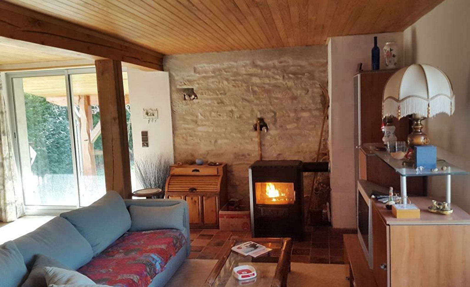 Chauffage au poêle à bois (bois fourni) et chauffage électrique dans chaque pièce.