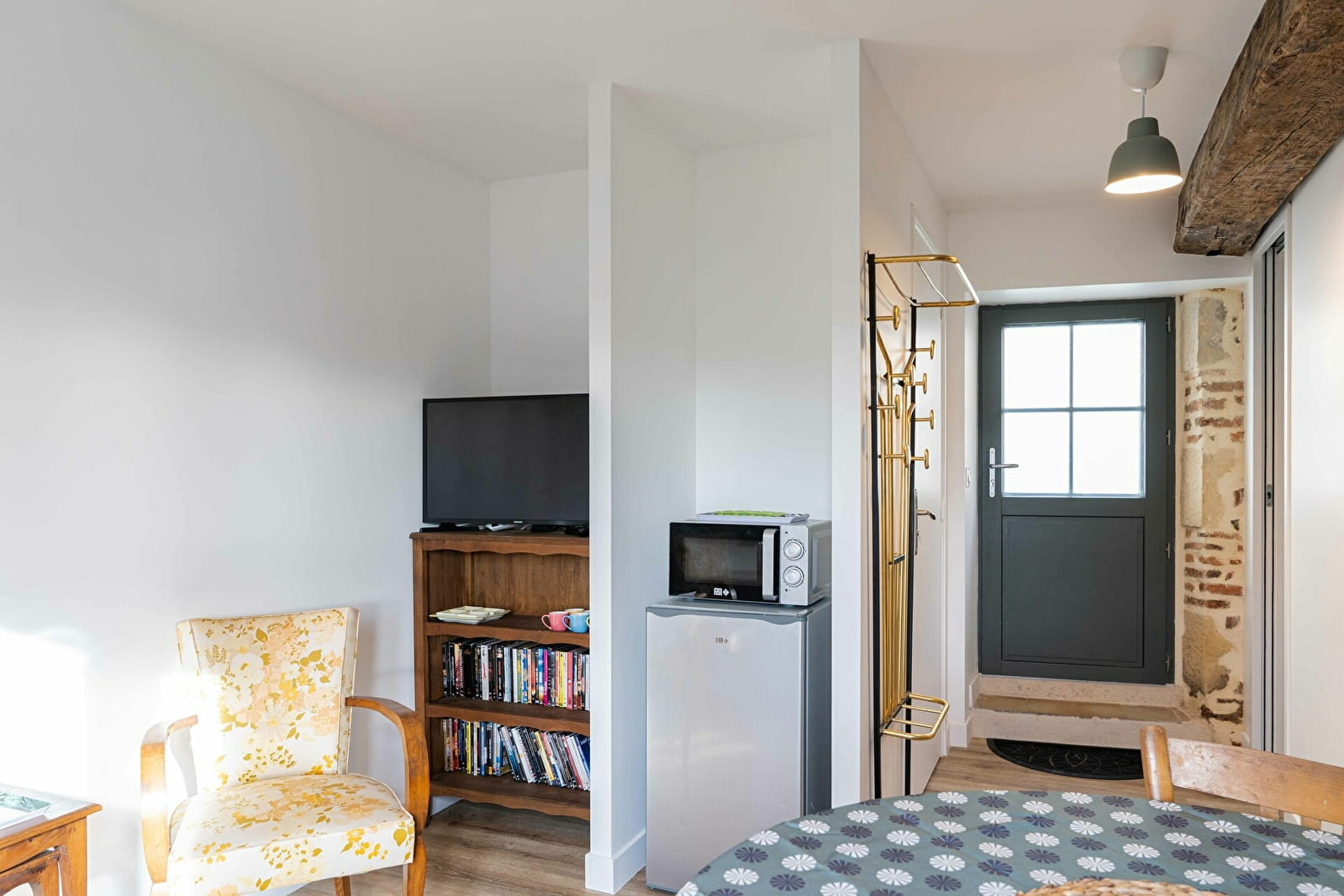 Composée d’une chambre cosy avec un grand lit 2 places, un salon lumineux ouvert sur une cuisine totalement équipée, une salle de bain avec douche spacieuse, un WC indépendant.