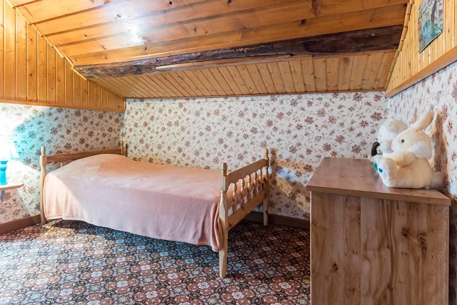 Dans un hameau à 3 km du village au cœur des Vosges Saônoises, petite maison indépendante avec jolie vue sur la campagne environnante, comprenant au RDC : cuisine/coin séjour, 1 chambre (1 Lit 140 cm) salle d'eau/WC. 1er étage : 1 espace couchage sous les combles (accès par escalier rapide) ; couchages supplémentaires possibles (2 lits 90cm). Garage. Terrain en pelouse privatif non clos. Chauffage central fuel.