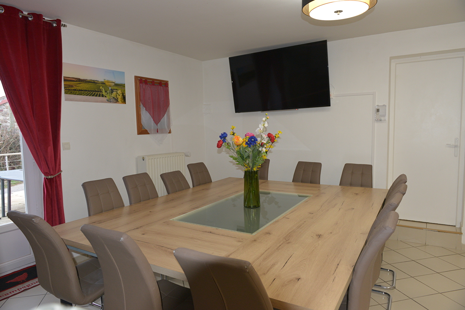 Vaste gîte dans une vieille maison en pierre avec piscine intérieure privative (que pour vous et accessible 24/24h) d'une taille de 6x4m (profondeur de 1.10m à 1.80) chauffée toute l'année. Nous vous proposons différentes options pour agrémenter votre séjour: le hammam (disponible toute l'année), la nage à contre-courant avec fonction balnéothérapie (disponible toute l'année) et le spa 5 places chauffé à 37°c (disponible seulement au week-end) . Chauffage pompe à chaleur et central gaz. Wifi (fibre optique très haut débit). Maison individuelle sur 2 niveaux. Rdc : séjour-cuisine, salon, 3 chambres (1 lit 2 personnes en 160x200cm / 1 lit 2 personnes en 160x200cm + 1 lit enfant / 1 lit 2 personnes en 160x200cm), 3 salles de bains (2 avec baignoires dont une avec Wc / une avec douche), Wc indépendant. 1er étage : 1 chambre (1 lit 2 personnes en 160x200cm), salon TV (avec espace bibliothèque et jeux), salle d'eau (douche), WC indépendants. Dépendance mitoyenne avec accès indépendant : 3 chambres (1 lit 2 personnes en 160x200cm / 1 lit 2 personnes en 160x200cm / 2 lits 1 personne en 90x190cm), espace salon TV (canapé convertible 2 personnes en 140x190cm en appoint supplémentaire possible), salle de bains (baignoire), Wc indépendants. Jardin + terrasse. Table de ping-pong + coin pique-nique +jeux pour enfants (balançoire / trampoline de 4,20 m de diamètre). Parking privé. Équipement bébé à disposition.