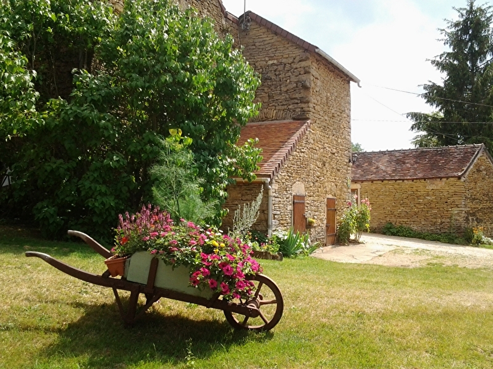 Marie-Claire & Alain (apiculteur amateur dont les ruches se tiennent bien à l’écart du gîte), vous accueillent au sein d’une ravissante authentique ferme traditionnelle du XVIIIe, pétrie d’histoire & intégralement restaurée blottie au calme, en "cul de sac", au cœur d’un paisible & pittoresque mini hameau rural traversé par une bucolique petite rivière poissonneuse (site ayant jadis abrité un moulin). Absolue tranquillité, lové en pleine campagne vallonnée, à deux pas des premiers vignobles, en lisière d’une belle prairie (accueillant les vaches charolaises & limousines en saisons), sous les crêtes boisées des douces collines environnantes, au pied d'un vaste massif forestier sauvage doté d'une littérale "Mer de pierres" (curiosité géologique constituée de plusieurs clairières de blocs de granit de toutes tailles sur près d'un kilomètre). Magnifique écrin champêtre & naturel alentour, en partie protégé en Zone Natura 2000 & "ZNIEFF" pour ses richesses faunistiques & floristiques. Cadre & site enchanteurs, véritable havre de paix & repos. Gîte de bon confort. Chaleureux cachet campagnard un brin rustique mixé à l’âme totalement dépaysante d’une ancienne demeure. Intimiste & très agréable "jardin clos suspendu" de 80m² bordant les prés, soigneusement engazonné & végétalisé (soutenu par d’historiques murs en pierres sèches), doté d’une terrasse ombragée sous canisse. Terrasse exposée au pied du gîte. Accès à terrain de pétanque & table de ping-pong.
