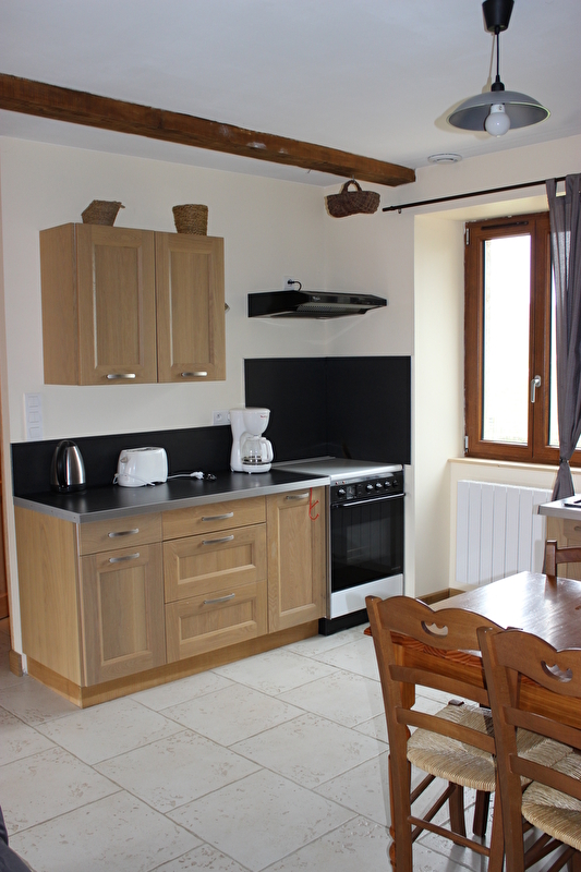 Maison au calme, isolée du village mais à proximité des propriétaires. La maison possède 2 chambres et une salle de bain, cuisine/salle à manger. Le gîte possède une cour fermée avec salon de jardin, transats, et barbecue. Nous mettons à disposition deux vélos adultes avec un siège bébé.