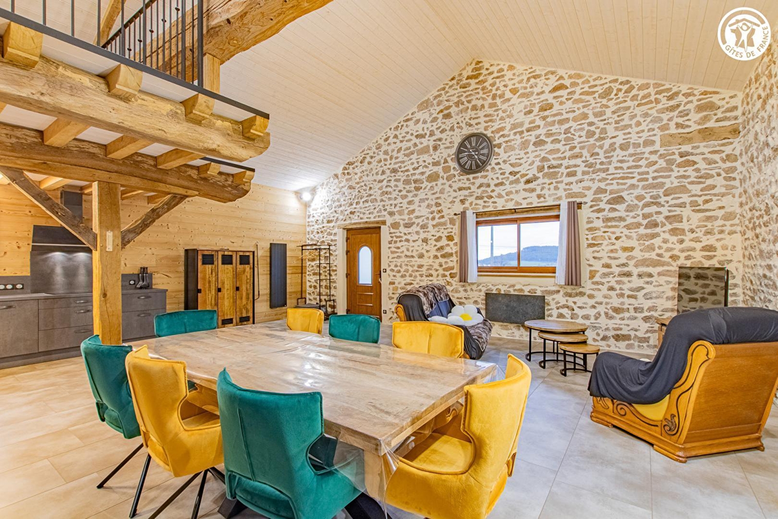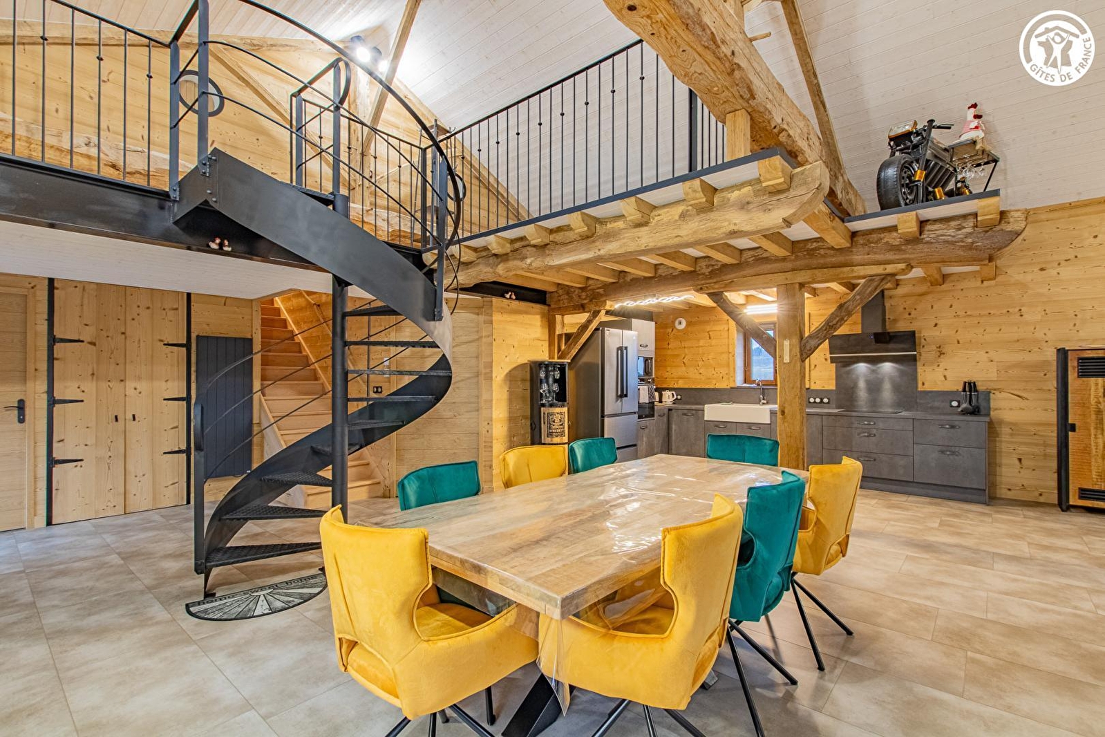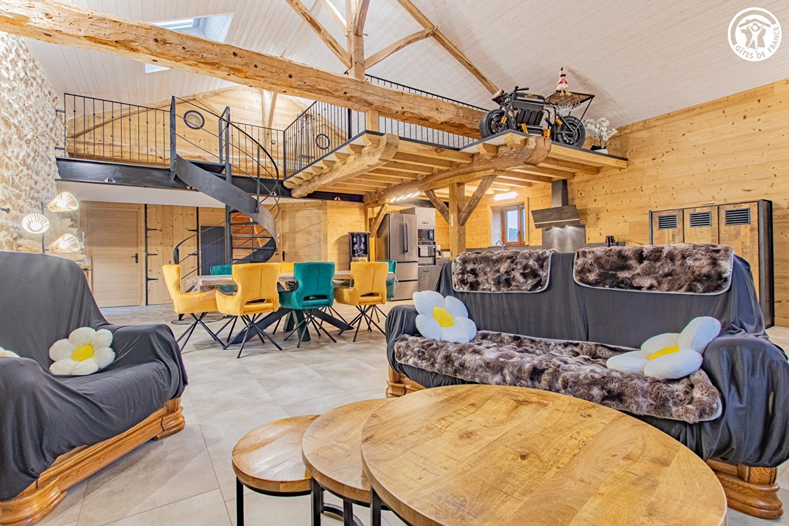 Isabelle & Olivier vous ouvrent les portes d'une ravissante ferme "familiale" traditionnelle de caractère érigée en 1819, pétrie d'histoire & restaurée avec soins, blottie en "balcon panoramique" au cœur des prés (avec en saison les célèbres vaches charolaises comme voisines privilégiées), à flanc de colline sur un coteau sud-est exposé, au sein d'un petit hameau rural résidentiel & agricole voisinant le pittoresque "centre bourg" du village. Totale tranquillité, en pleine campagne préservée, au creux d'un site protégé en ZNIEFF & Zone Natura 2000 (pour ses richesses floristiques & faunistiques), sublime écrin paysagé de montagne douce conjuguant prairies bocagères, étangs, rivières & belles forêts sauvage, à deux pas du rare arboretum de Pézanin, l'un des plus beaux de France (comprenant 450 espèces végétales sur 25 ha, autour d'un bucolique étang de pêche). Cadre & site enchanteur. Spacieux gîte de très bon confort. Vaste pièce de vie au beau volume "cathédrale". Chaleureux cachet campagnard aux accents contemporains mixant ambiance "montagnarde" boisée & esprit "industriel" (magnifique escalier en métal noir), dialoguant avec l'âme dépaysante des lieux (élégants murs & linteaux en pierres et somptueuse charpente d'origine). Ultra cosy & douillet. Énormément de charme & caractère. Terrasse panoramique exposée (dotée d'un espace détente "outdoor") dominant un agréable jardin clos. Superbe vue dégagée sur la campagne environnante & les monts du Mâconnais.
