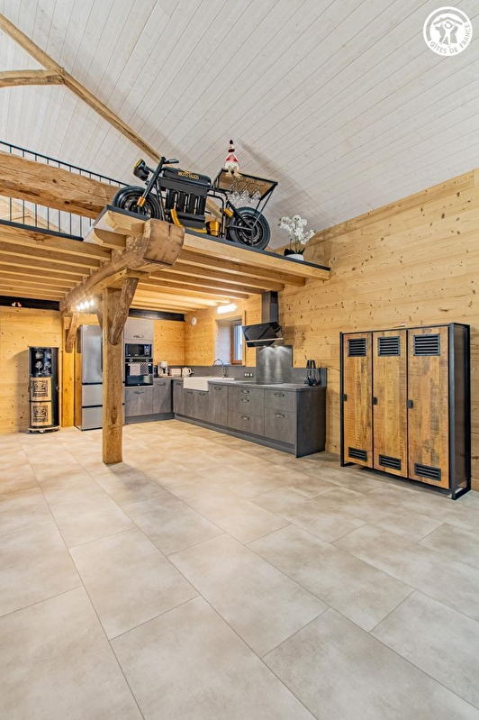 Composition : Gîte mitoyen à l'habitation propriétaires (totale indépendance sans vis-à-vis). Accès par petit chemin montant depuis parking. Wifi (fibre). Chauffage électrique. Rdc : séjour-cuisine-salon, chambre PMR (lit 2 p. 160x200cm) avec TV & salle d'eau "ouverte" (douche/Wc indépendant), salle d'eau (douche/Wc). 1er étage : 3 chambres dont 1 en mezzanine (lit 2 p. 140x190cm dans chacune). Jardin clos (300m²) + terrasse + local vélos + parking privés. Petits commerces & supérette 2 km. Mini supermarché 10 km.