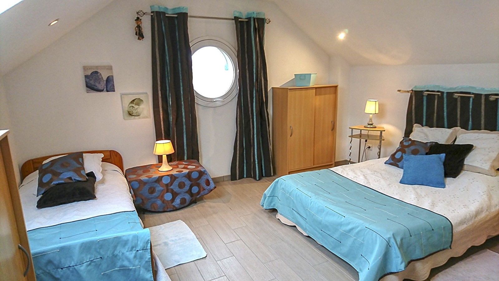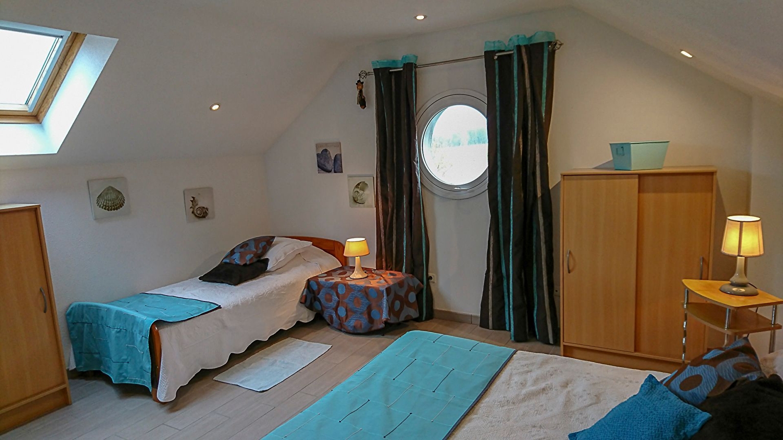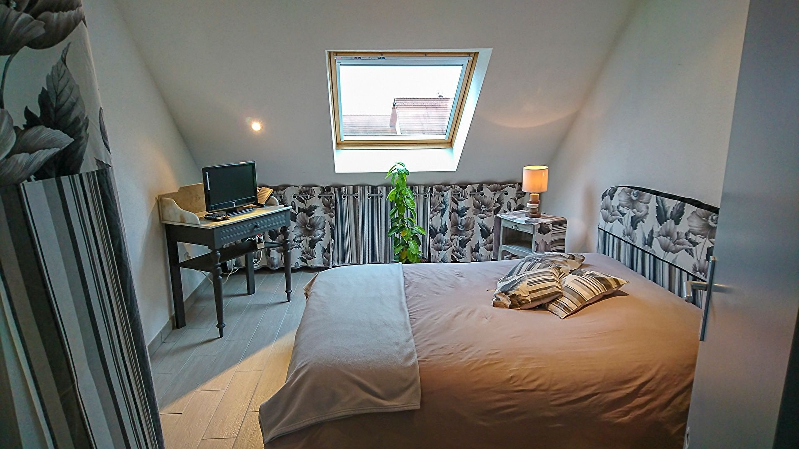 Gîte de 5 personnes situé au 1er étage en duplex. Tout confort comportant 2 chambres avec 2 lits 2 places et 1 lit simple. Grande cuisine équipée s'ouvrant sur un espace repas et séjour. Terrain de jeux, espace vert, parking en commun pour les deux gîtes. Terrasse privée dans le jardin. Local à disposition pour les vélos, skis ou cannes à pêche. Gîte Plus avec draps et linge de maison à disposition. Wifi. Forfait ménage sur demande à 70€.