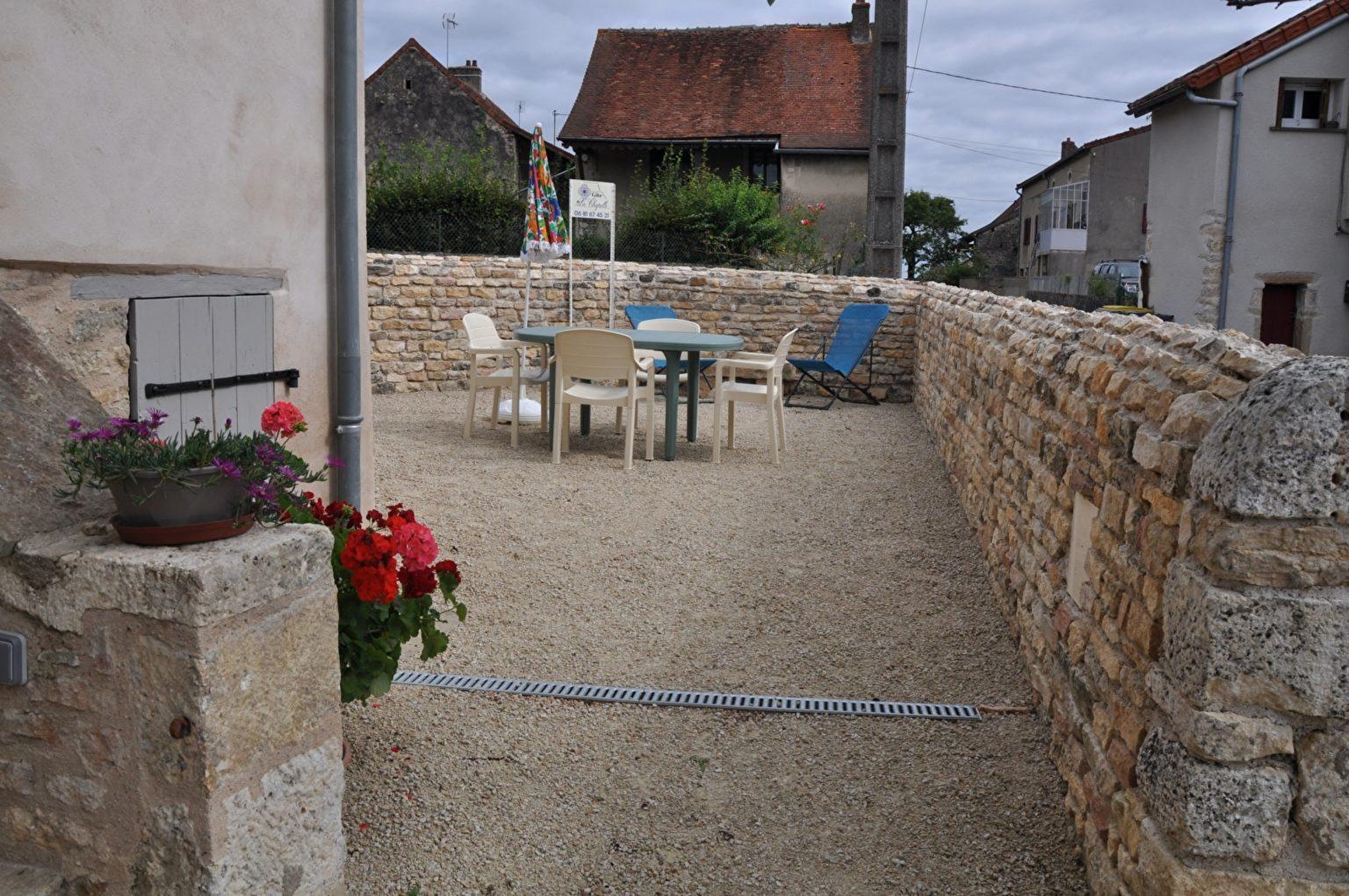 Madeleine & Bernard vous ouvrent les portes d'une très rare authentique chapelle romane du XVe siècle pétrie d'histoire (exceptionnel édifice patrimonial "désacralisé", bien familial depuis 5 générations), très soigneusement réhabilitée (ayant conservé sa toiture en pierres de lave parmi d'autres richesses architecturales d'origine), nichée au calme en bordure d'une petite ruelle, à deux pas des toutes premières vignes, au cœur d'un pittoresque paisible petit hameau viticole parfaitement préservé, non loin du centre du village de Saint-Boil (église romane classée du Xe, insolite ancienne carrière de sculptures gallo-romaines datant du IIIe siècle, majestueux viaduc ferrovier aux 16 arches de la fin XIXe…à découvrir). Totale tranquillité au creux des Côtes Chalonnaises & sa douce campagne vallonnée conjuguant magnifiques coteaux de vignobles, bucoliques prairies bocagères et vastes forêts sauvages, entre pleine nature, viticulture & agriculture. Cadre paysagé alentours de toute beauté. 100% relaxant & reposant. Gîte de très bon confort. Chaleureux cachet campagnard aux accents contemporains sublimé par la conservation des riches traces patrimoniales du bâti d'origine (imposants piliers & murs en pierres, fenêtre "à vitrail" sculptée, niche sculptée en pierres...). Ambiance douillette & cosy. Beaucoup de charme & de caractère. Agréable cour close en gravier, cerclé d'élégants murs en pierres, abritant une large terrasse exposée (ou naturellement ombragée au besoin sous un pêcher). Vous disposez également d'un terrain de pétanque sis face au gîte.