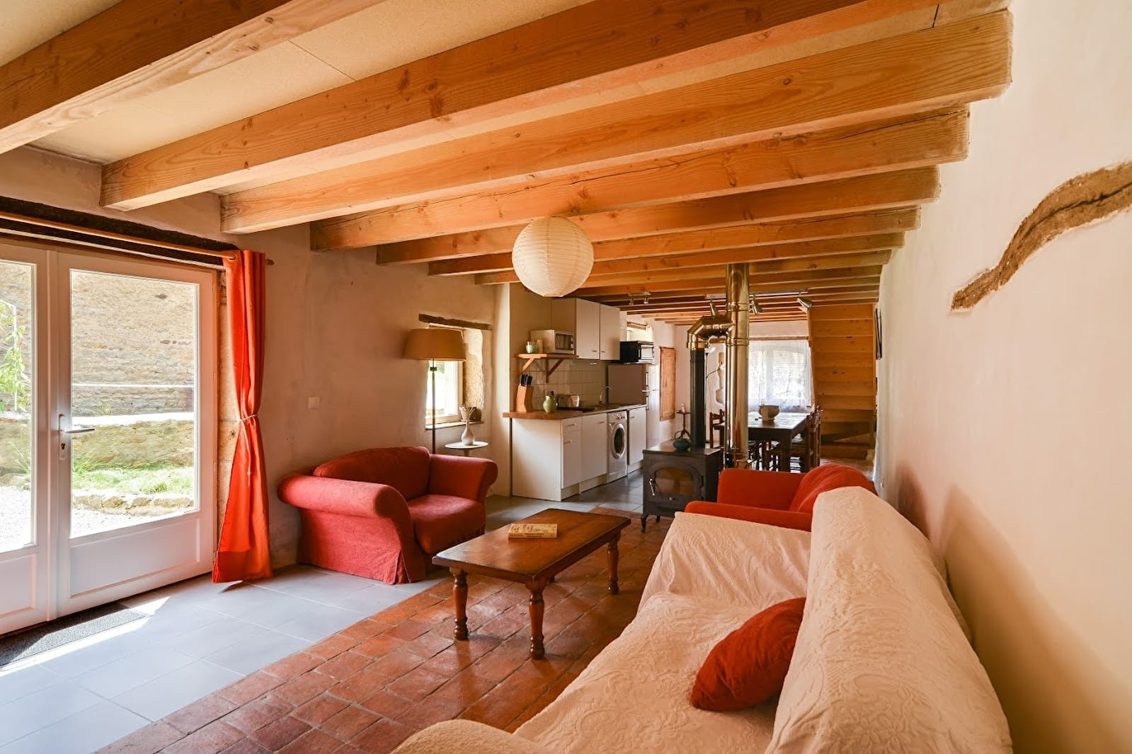 Au centre de la campagne Brionnaise, le Gîte de la Croix est une maison de charme, indépendante pour 6 personnes (+ 1 bébé). Ancienne grange de 100m² totalement rénovée avec soins dans un magnifique hameau à 10 km de La Clayette et de Charolles. La maison dispose d’une grande pergola avec toutes les commodités pour passer de bons moments à l’extérieur. Bordée de forêts et de collines, cette charmante maison est idéalement placée pour un séjour décontracté et serein. Calme absolu garanti.