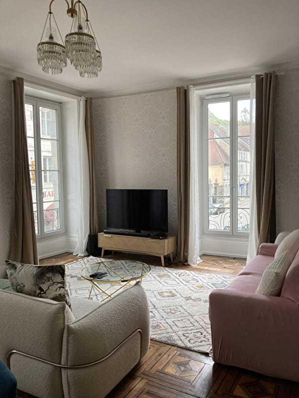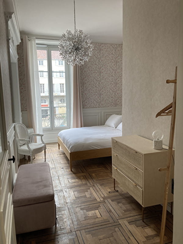 Appartement 2 à 6 personnes de 90 m² entièrement rénové tout en gardant le charme de l'ancien (boiseries, parquets marquetés, corniche). Deux chambres avec lit 160 et un vrai canapé lit dans le salon. Petit extérieur.