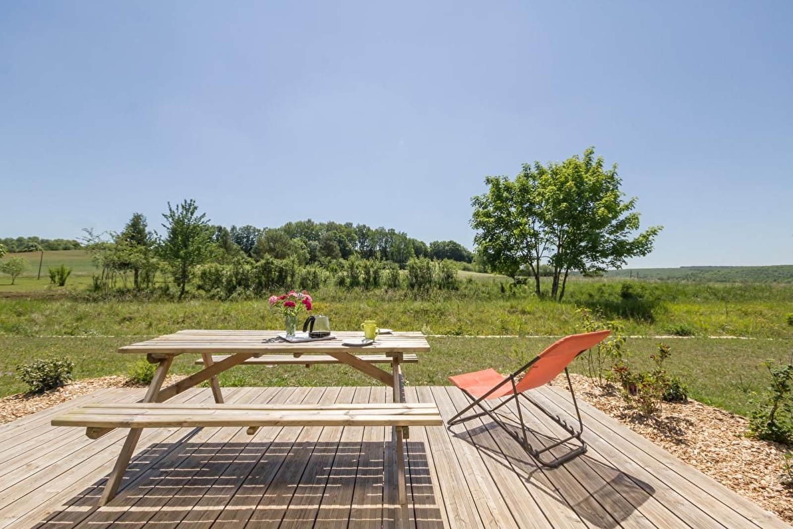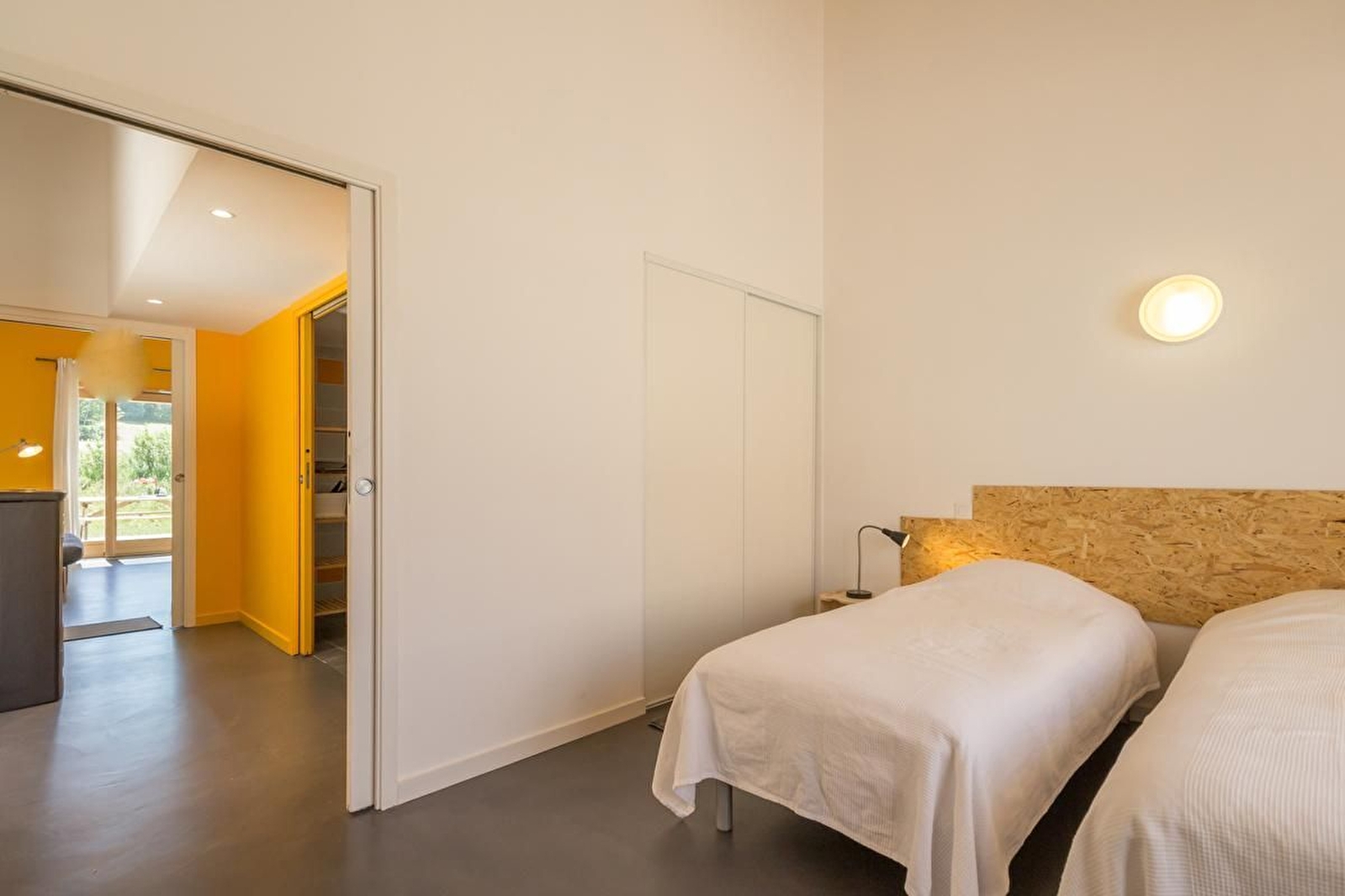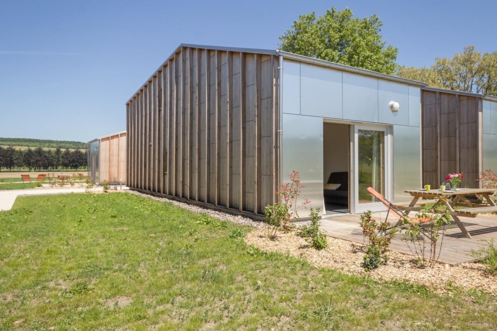 Au calme, en plein coeur du parc national de Forêts (en Champagne et Bourgogne), gîte contemporain en bois et aluminium sur 2 étages. Rez-de-chaussée en béton ciré : salon-salle à manger avec cuisine équipée et accès direct à une belle terrasse en bois. Une chambre 2 lits 80 jumelables. Une salle d'eau avec douche et WC. Etage : une chambre avec 2 lits 80 jumelables.