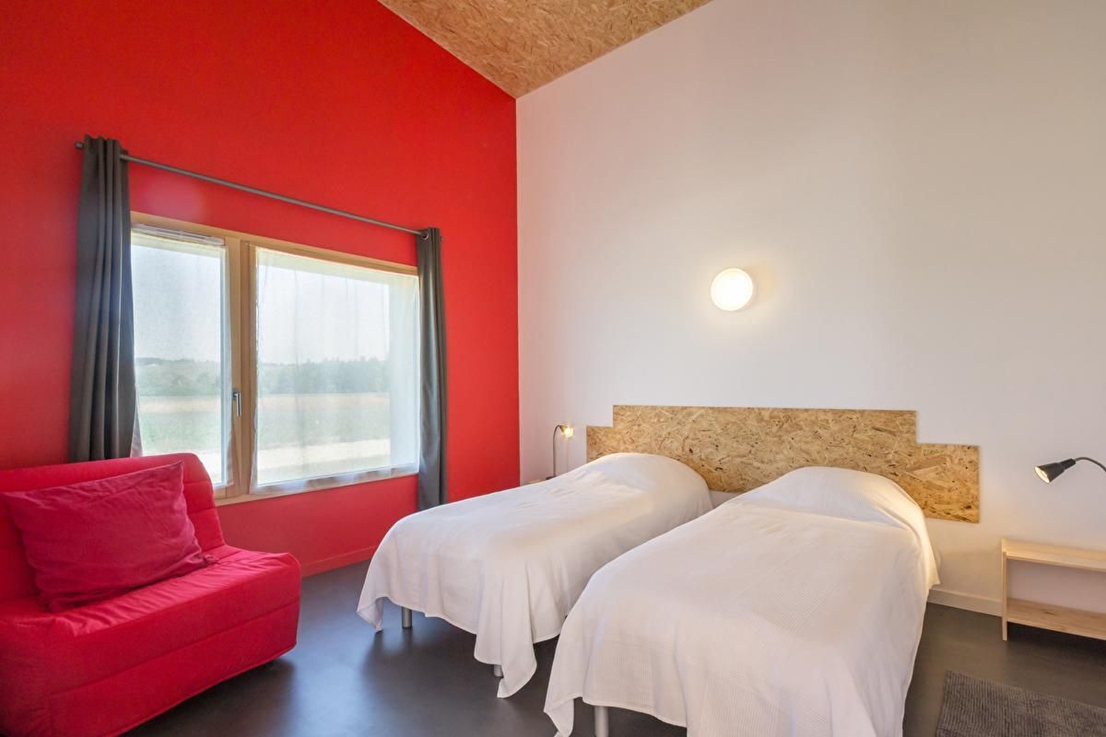 Au calme, en plein coeur du parc national de Forêts (en Champagne et Bourgogne), gîte contemporain en bois et aluminium sur 2 étages. Rez-de-chaussée en béton ciré : salon-salle à manger avec cuisine équipée et accès direct à une belle terrasse en bois. Une chambre 2 lits 80 jumelables. Une salle d'eau avec douche et WC. Etage : une chambre avec 2 lits 80 jumelables.