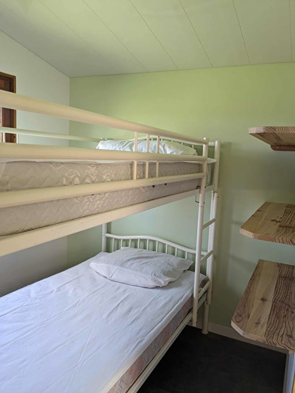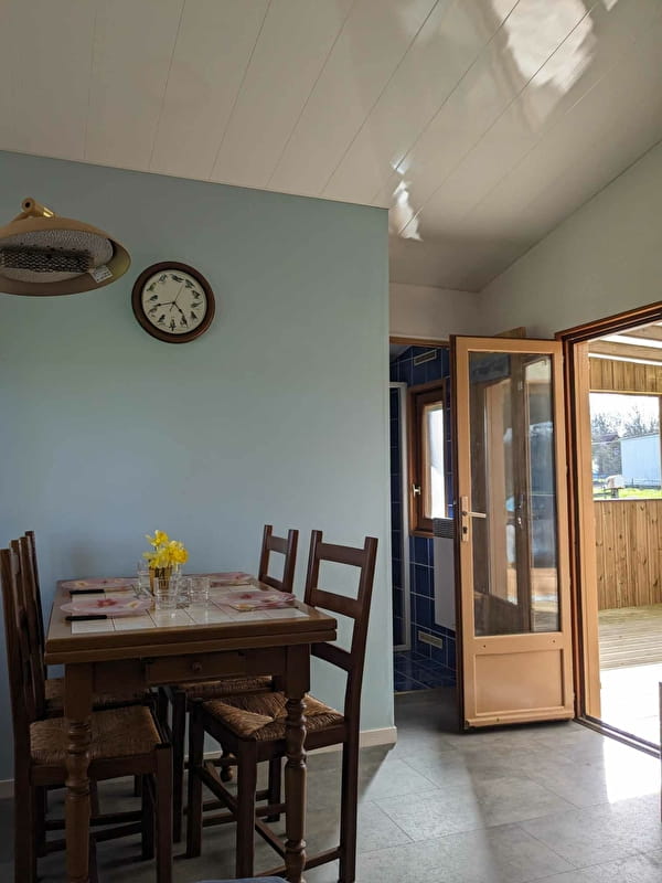 Ce chalet est équipé de 2 chambres (1 lit 2 personnes, 2 lits superposés), cuisine, coin salon et salle à manger avec TV, salle de douche, wc séparé, terrasse, jardin, parking. 4G. Canapé convertible pour couchage supplémentaire. Tous commerces à 2 km. Linge de maison non fourni (draps, serviettes). Non fumeur. Animaux non acceptés.