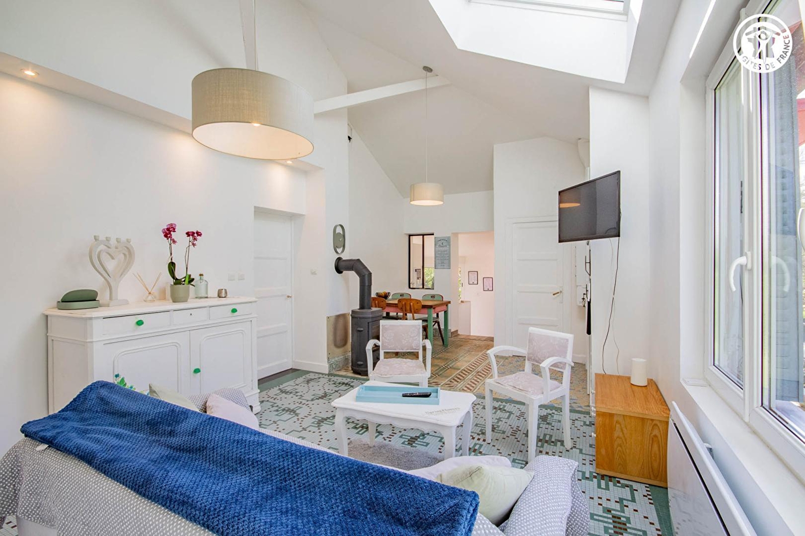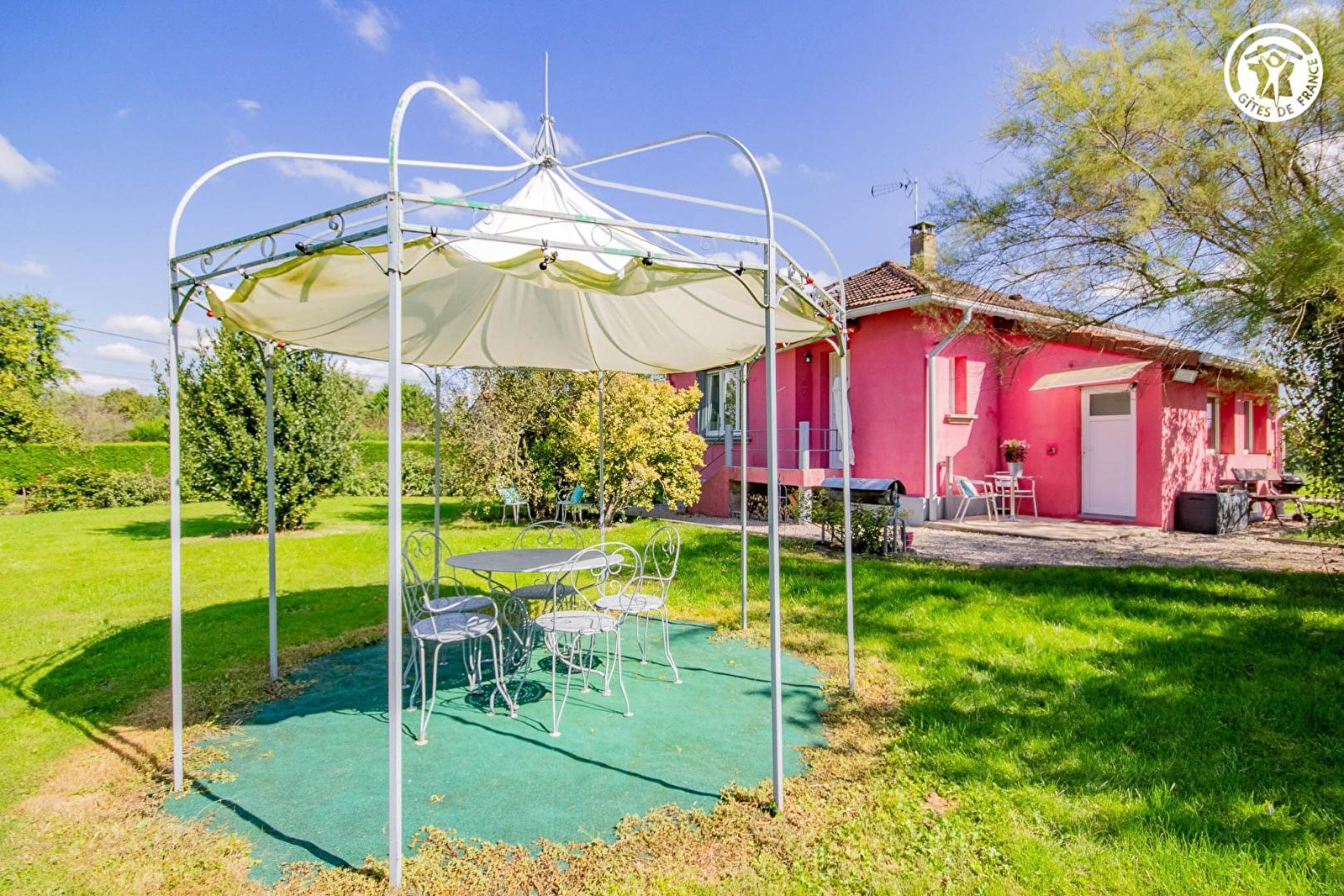 Composition : Maison individuelle jouxtant la "maison d'hôtes" des propriétaires (totale indépendance). Wifi. Chauffage électrique. Poêle à bois. Rdc surélevé (5 marches / accès de plain-pied par cuisine) : cuisine, séjour-salon, 2 chambres (lit 2 p. 160x200cm / lit 2 p. 140x190cm + lit 1 p. 90x190cm surélevé) avec salles d'eau privatives "ouvertes" (douches), Wc indépendant. Balconnet + terrasse sous gloriette + mini terrasse + jardin (1000m²) + terrain pétanque + ping-pong + filet badminton + local vélos + parking privés. Commerces dont supermarché 7.5 km.