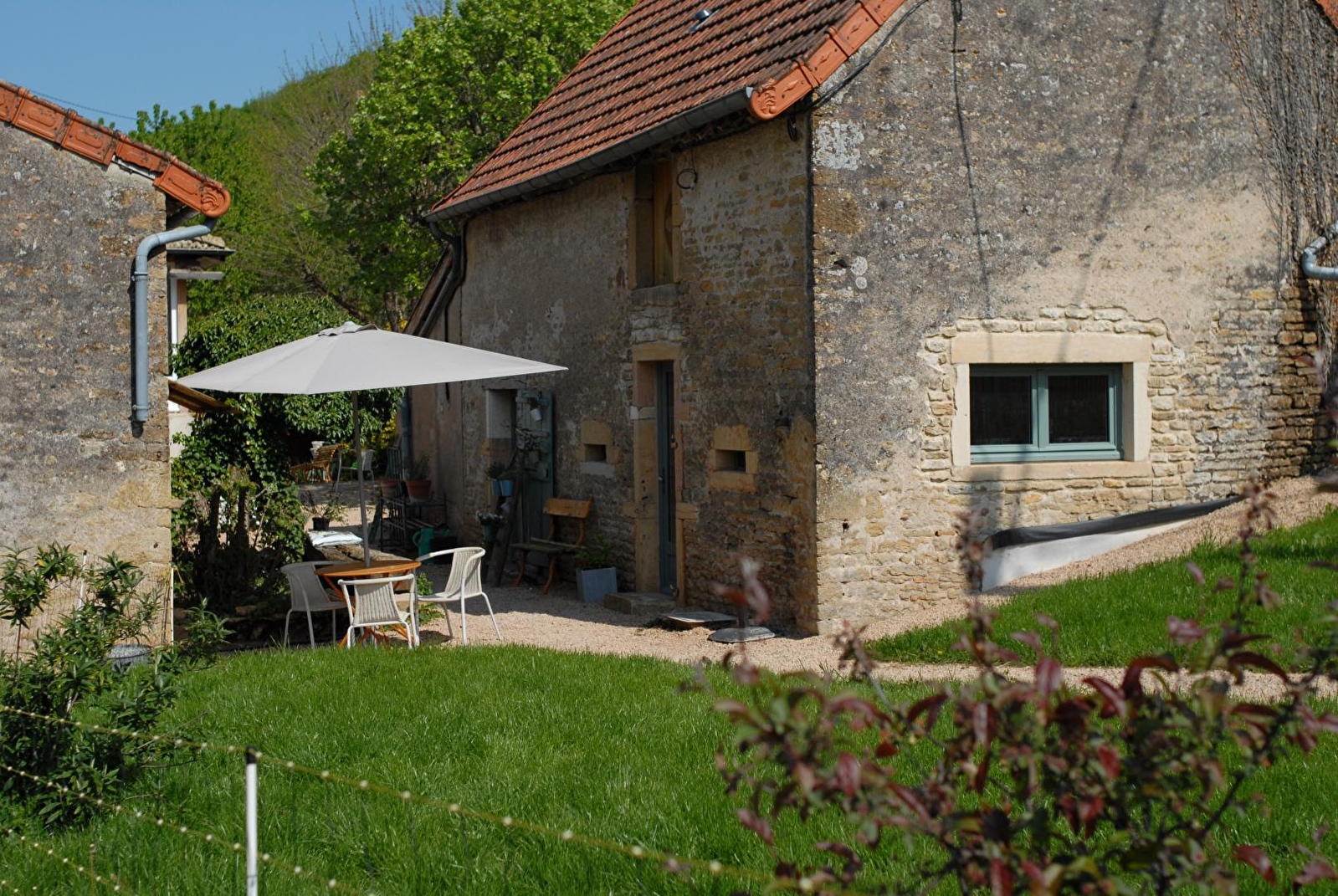 Propriétaire d'une brasserie artisanale située sur place (bière "la Paille" / visite et dégustation possible), Julien & sa compagne Céline vous accueillent au sein d'un confortable gîte blotti dans une authentique écurie traditionnelle de caractère du XIXème siècle soigneusement restaurée, sise sur un ancien domaine agricole chargée d'histoire. Calme absolu, niché en pleine campagne clunisoise, au cœur d'un paisible & charmant petit village typique (riche d'une ravissante chapelle romane du XIVème siècle) adossé en "balcon" à flanc de coteau exposé , au creux d'un bucolique vallon cerclé de collines boisées, magnifique écrin préservé de nature & verdure protégé en "Zone Natura 2000" pour ses riches écosystèmes Splendide cadre champêtre conjuguant bocages, vignobles, prairies, rivières & belles forêts sauvage. Site paysager littéralement enchanteur, ultra relaxant & reposant. Spacieux gîte de bon confort. Chaleureux cachet campagnard contemporain aménagé dans un esprit "maison de famille" allié à une rénovation patrimoniale soignée (préservation des murs en pierres & linteaux de fenêtre en bois d'origine). Ambiance zen & cosy. Belles chambres "cathédrales" cocooning lovées sous les toits. Large terrasse en gravier, ombragée & exposée, jouxtant un agréable jardinet privatif ouvert sur une grande prairie (en partie pentus), parfait terrain de jeu naturel pour les enfants. Belle vue dégagée sur le village & la campagne environnante. Apaisant panorama & paysage.