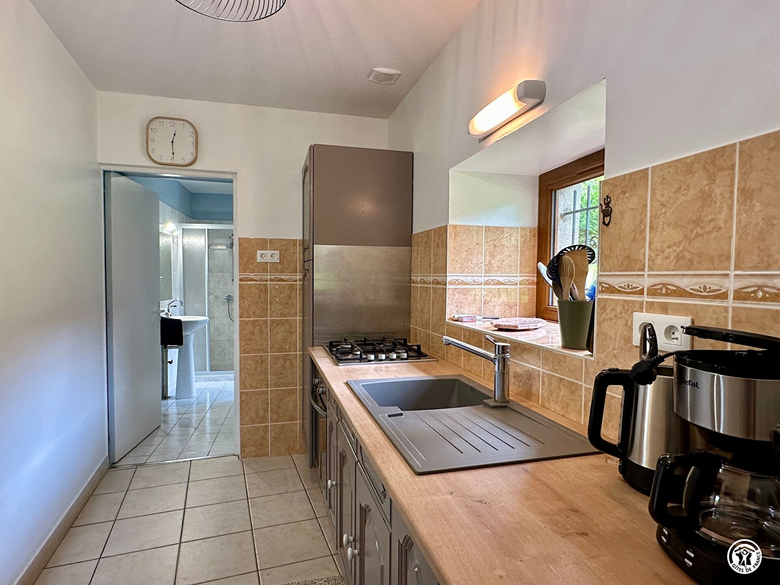 Idéale pour 2 personnes, cette maison indépendante (RDC surélevé : 4 marches) de plain-pied vous offre : une agréable pièce de vie avec coin salon (TV écran plat) et salle à manger avec poêle à bois (bois fourni). Une chambre spacieuse à la décoration soignée. Lit 160x200cm. Une cuisine indépendante équipée (plaque 3 feux - induction). Une salle d’eau avec douche et wc. Machine à laver.