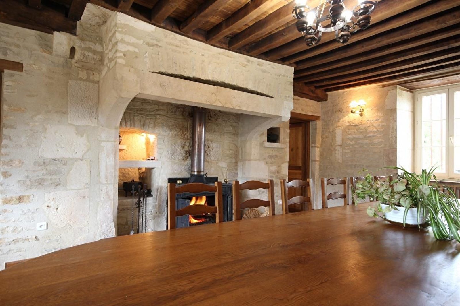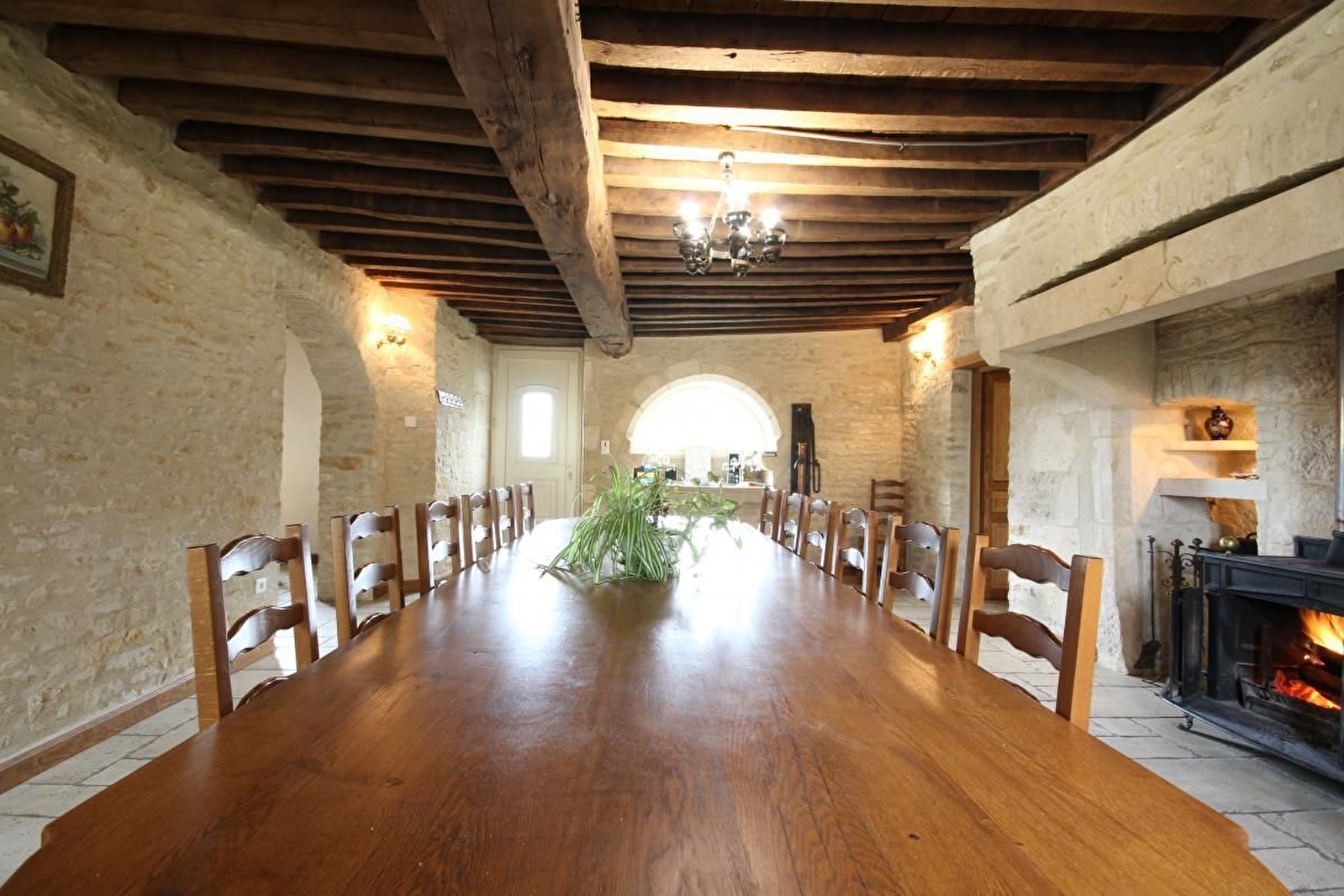 Au rez-de-chaussée une cuisine équipée, une spacieuse salle à manger avec pierres apparentes et cheminée (bois offert) et 2 chambres, l'une est dotée d'un lit 160cm, l'autre de 2 lits 90cm. Salle d'eau. WC..