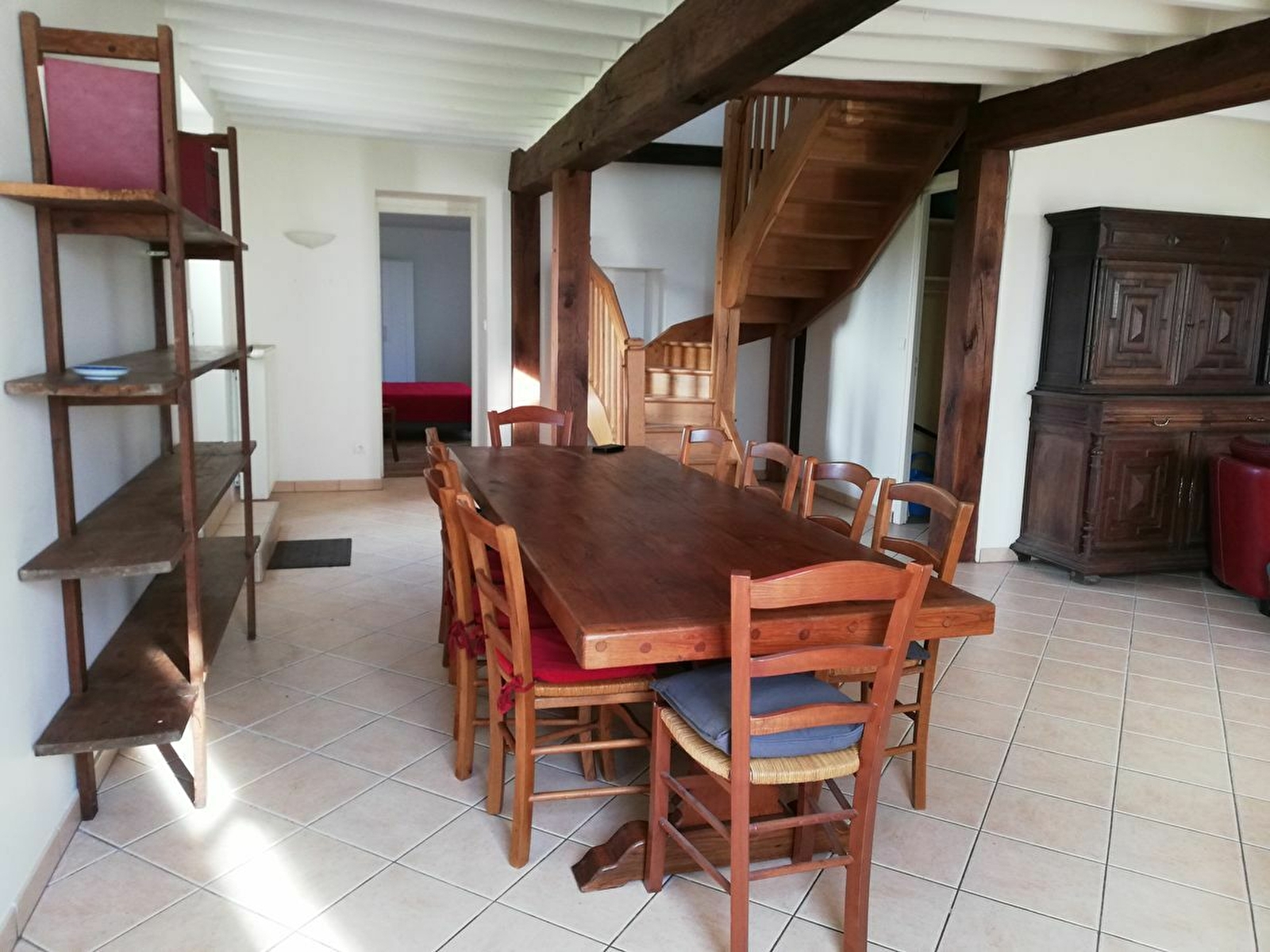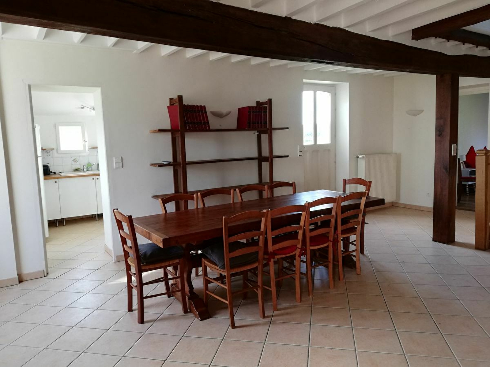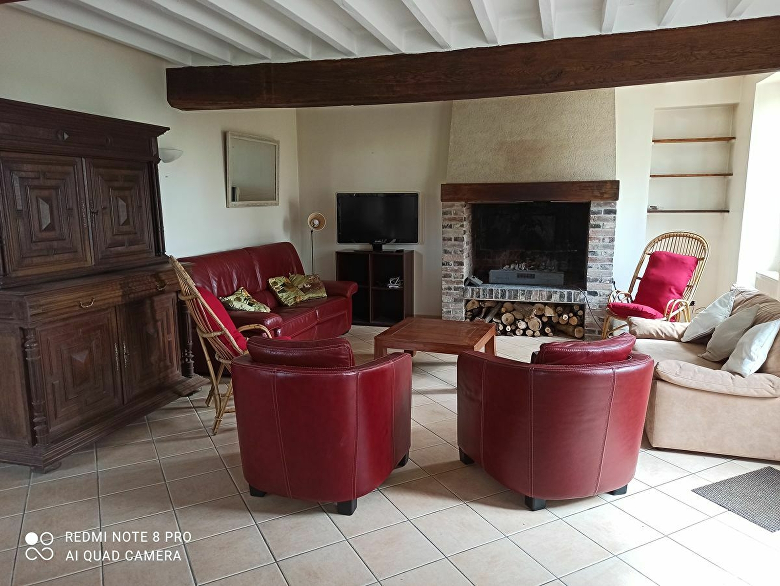La Maison, tout confort de 145 m², rénovée avec de nobles matériaux (carrelage, parquets et escalier bois massif, poutres apparentes, cheminée,…) : 4 chambres, 1 grande pièce de vie, TV et Internet, 2 SdB, 2 WC, est située au bout d’une grande allée et au milieu d’un jardin paysager clos de 1.400 m2 entouré de bois et de champs ; peut recevoir de 4 à 9 personnes.