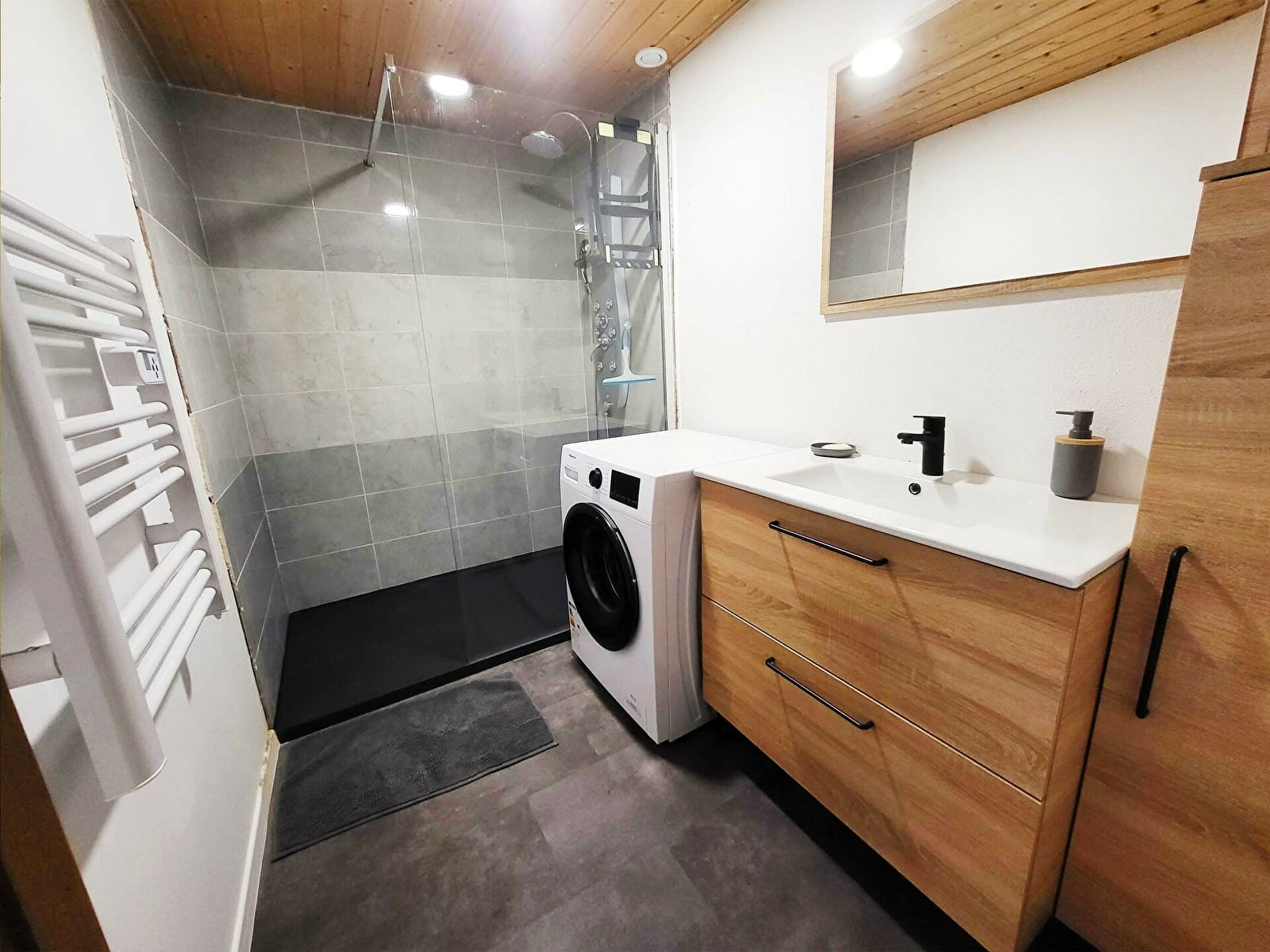 Cuisine équipée : four micro-onde, lave vaisselle, lave linge, cafetière Senséo. Salon avec Tv connectée + Wifi haut débit