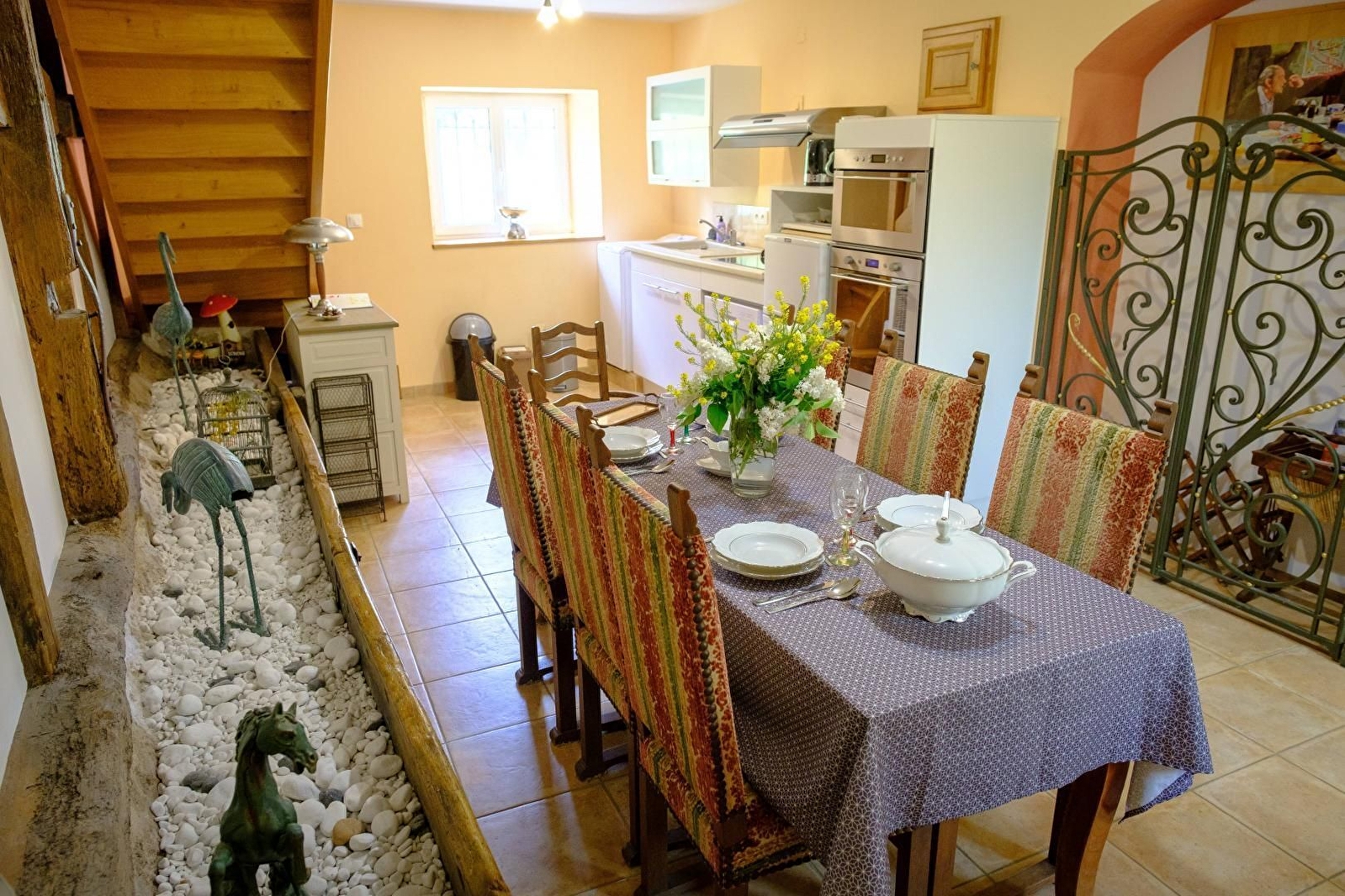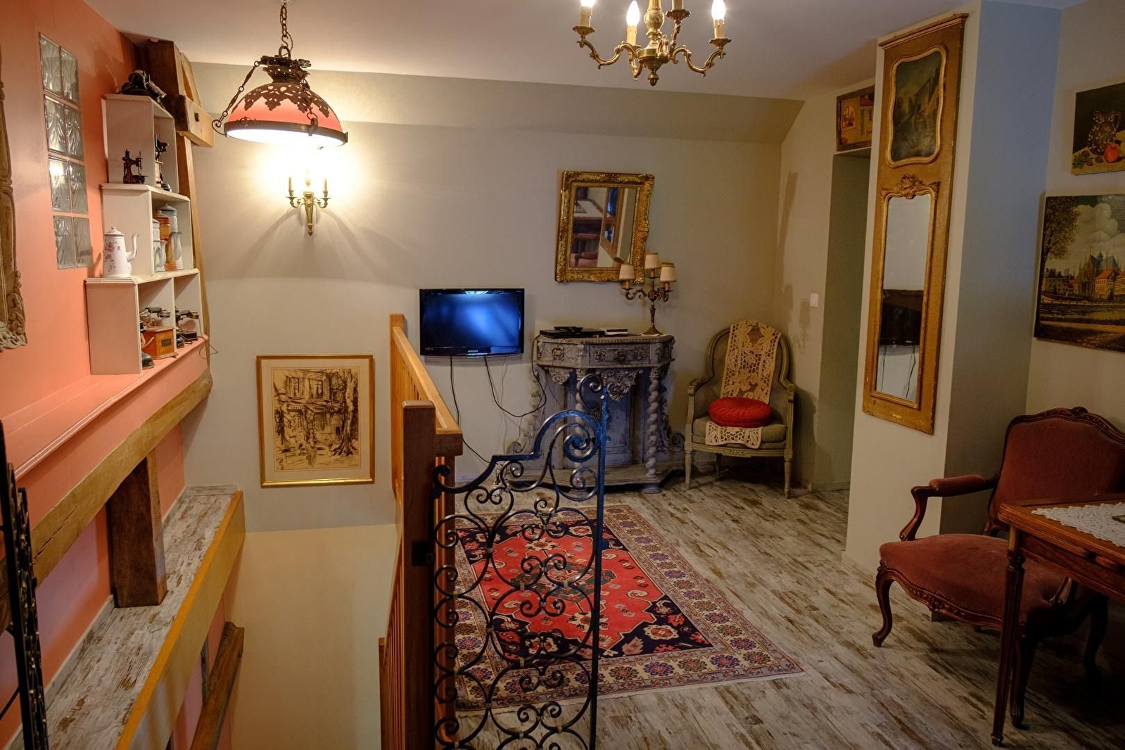 Beau gîte sur 109m² construit dans un ancien corps de ferme, mitoyen avec la maison des anciens propriétaires, parfaitement rénové et décoré avec soin. Au rez-de-chaussée : un séjour meublé Louis XIII avec télévision, cuisine ouverte équipée haut de gamme, laverie avec lave-linge et sèche-linge, 1 wc indépendant. A l'étage: salon bibliothèque avec télévision et lecteur dvd, wifi (fibre), 2 chambres avec 1 lit 140*190 chacune, 1 grande chambre avec 1 lit 140x190 et 1 lit 90*190 et télévision, une salle d'eau avec douche et WC indépendant. Grand jardin clos de 5000 m² avec mobilier de jardin, barbecue, transats, balançoire, trampoline. Abri pour 2 voitures et motos. Qualification bienvenue aux motards.
